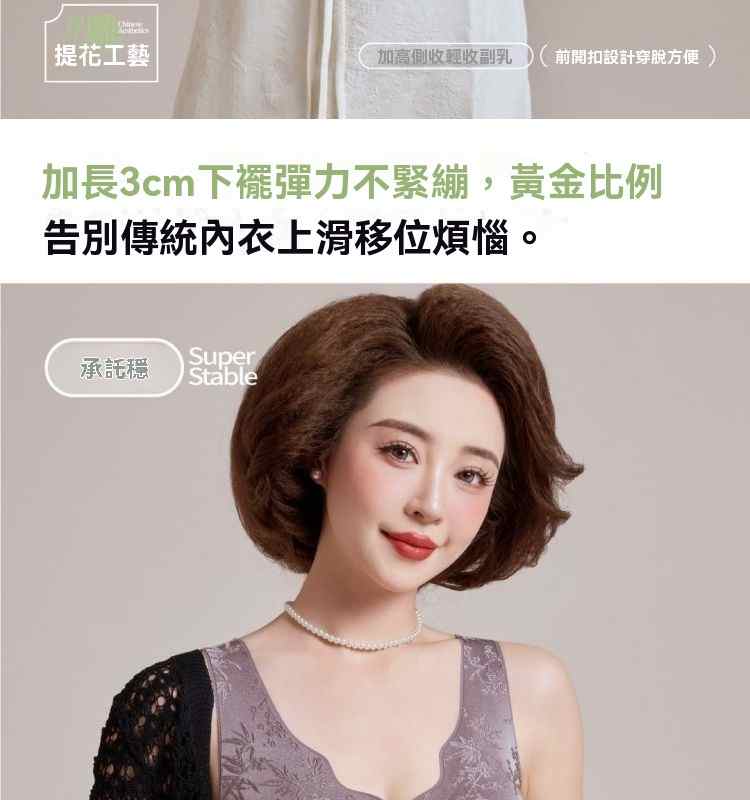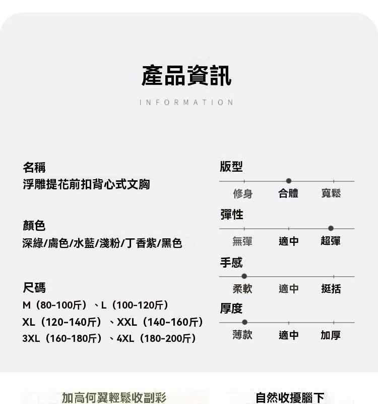 【加寬肩帶!加長下擺!加高側比!4件僅需980元!】浮雕提花前開扣調整型內衣