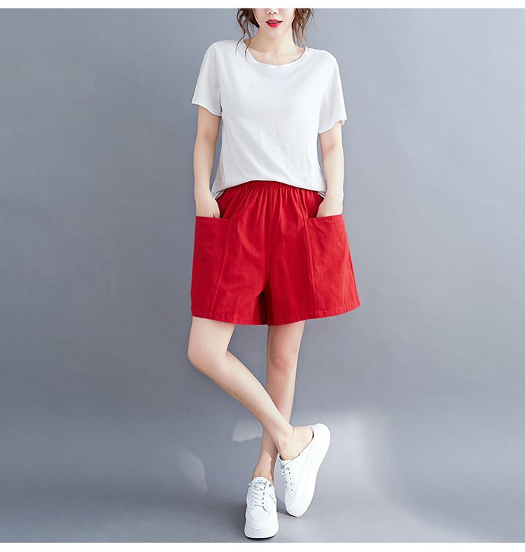 大碼休閒直筒五分褲【買一送二】紅色+綠色+卡其色各一條(到手三條,每條均價333元)