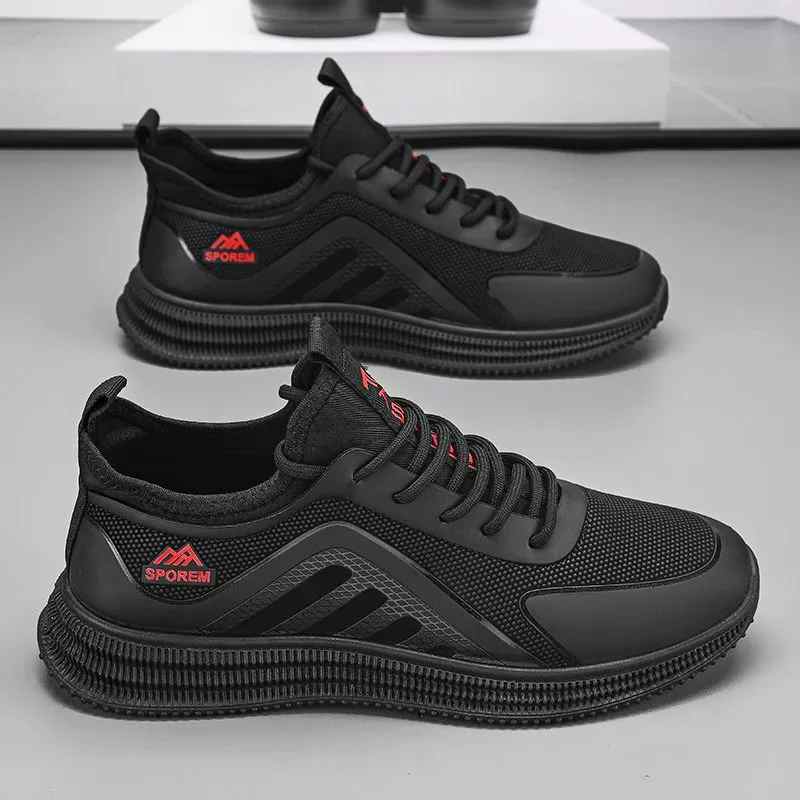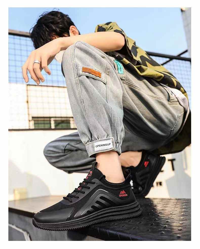 上腳舒適透氣防滑休閒男鞋【買一送一】黑紅色+黑白色各一雙(到手2雙,每雙均價499元!)