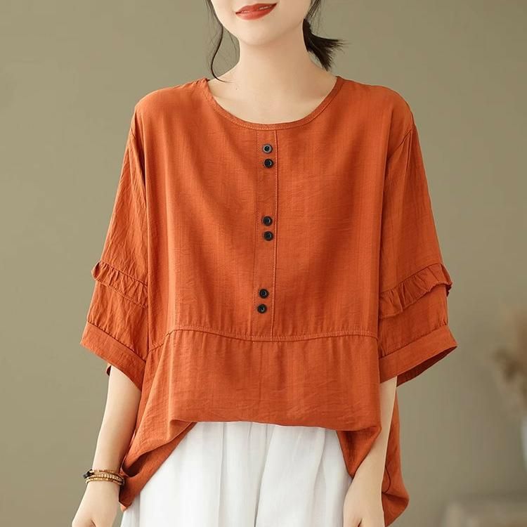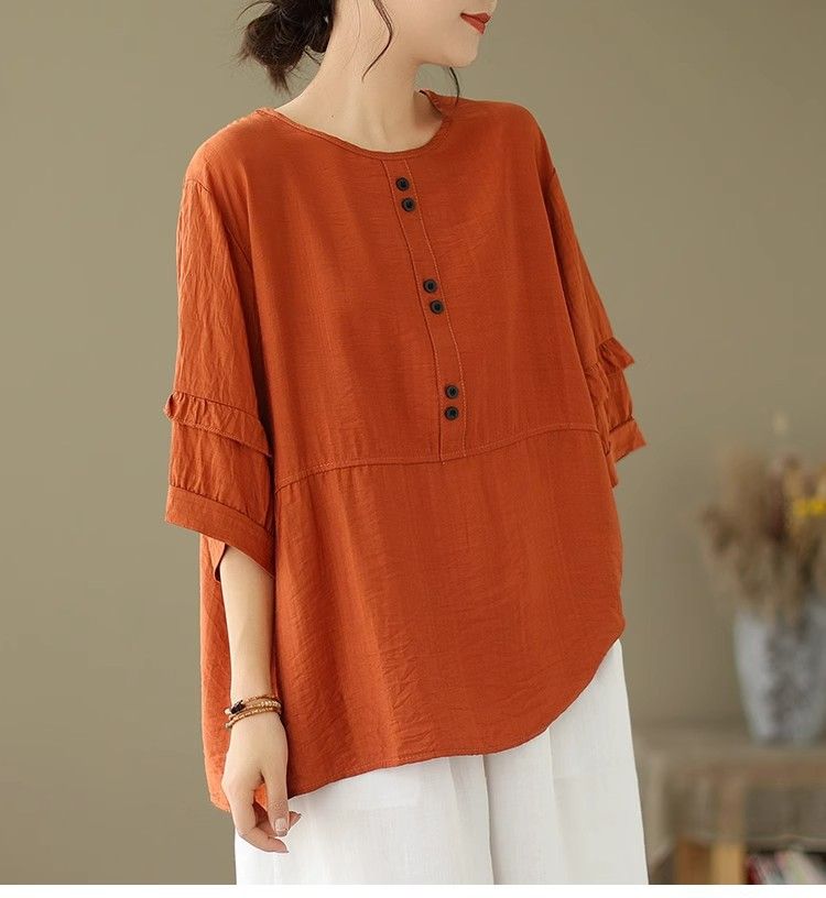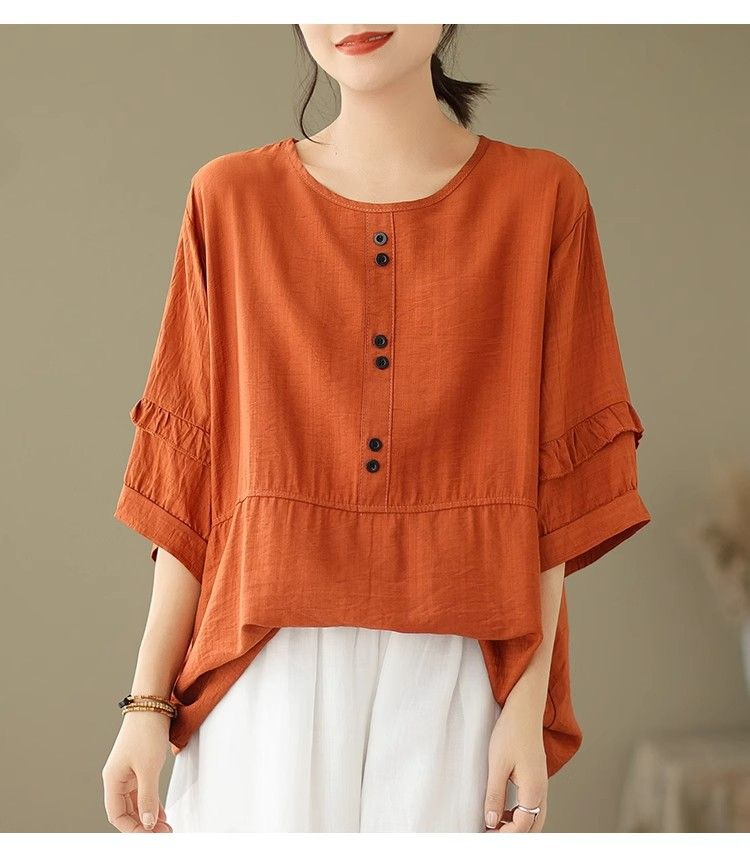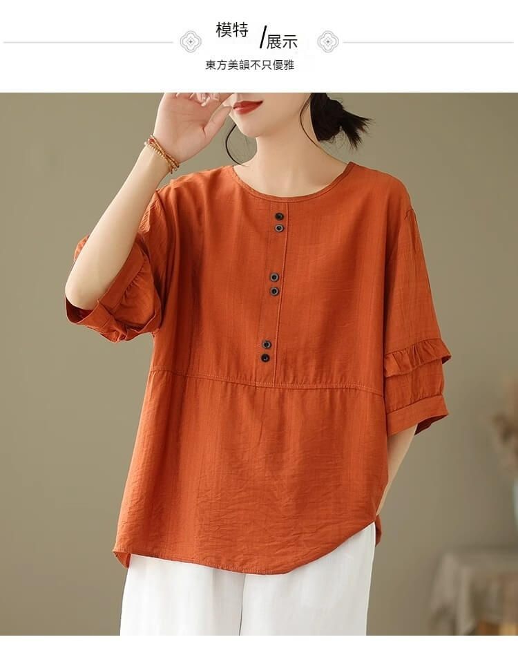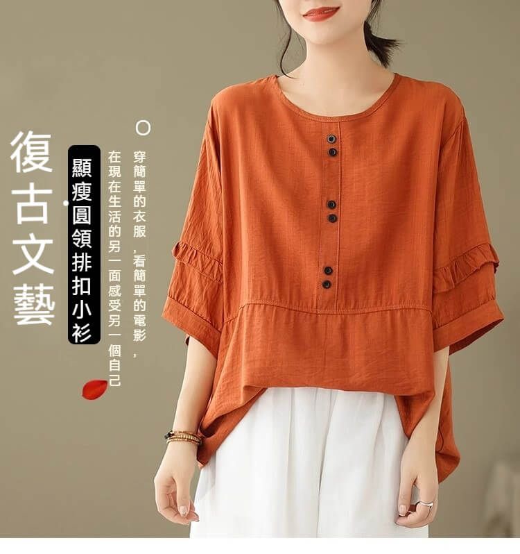 立體寬鬆顯瘦圓領排扣小衫【桔紅色】兩件(到手兩件,每件均價499元)
