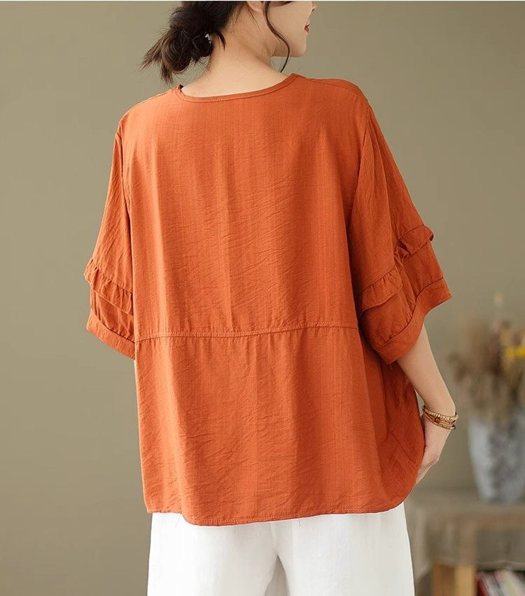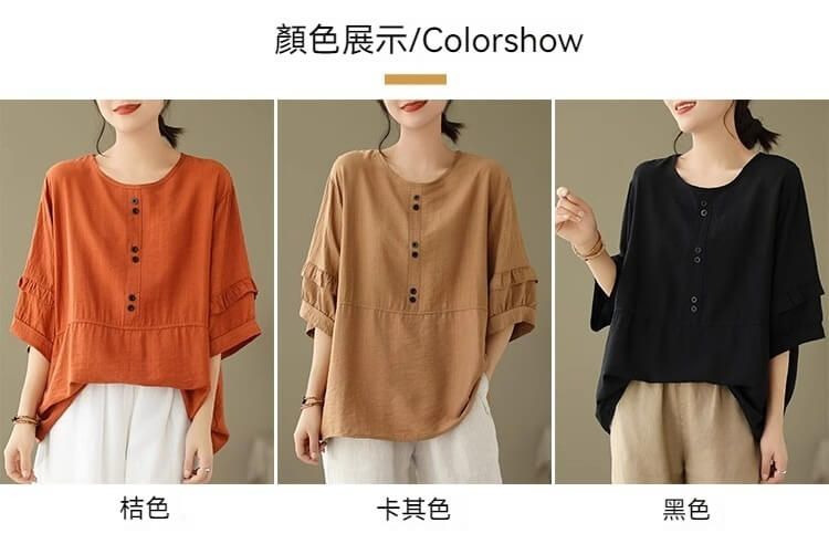立體寬鬆顯瘦圓領排扣小衫【桔紅色】+【卡其色】各一件(到手兩件,每件均價499元)
