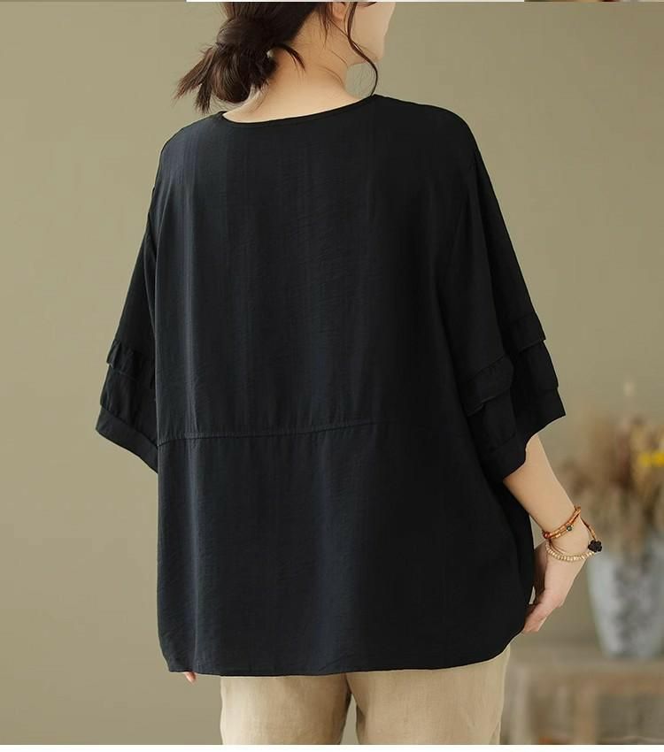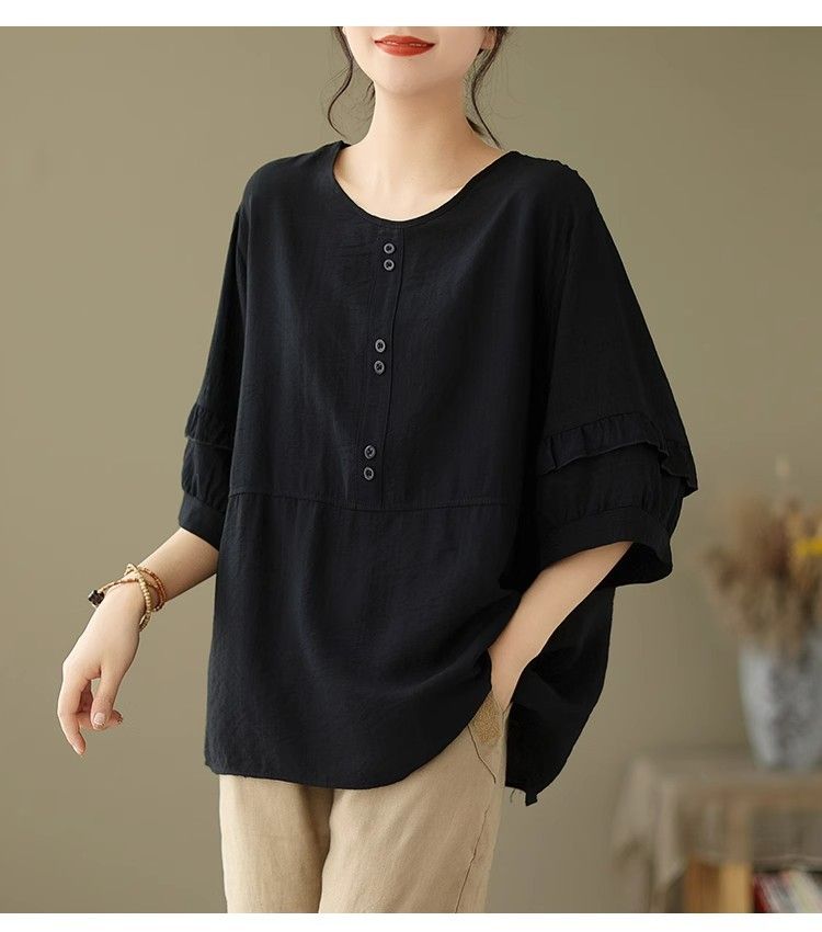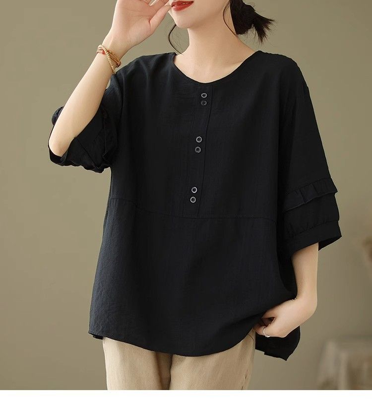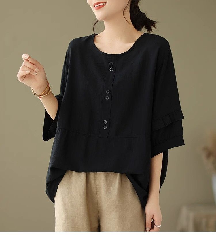 立體寬鬆顯瘦圓領排扣小衫【黑色】兩件(到手兩件,每件均價499元)