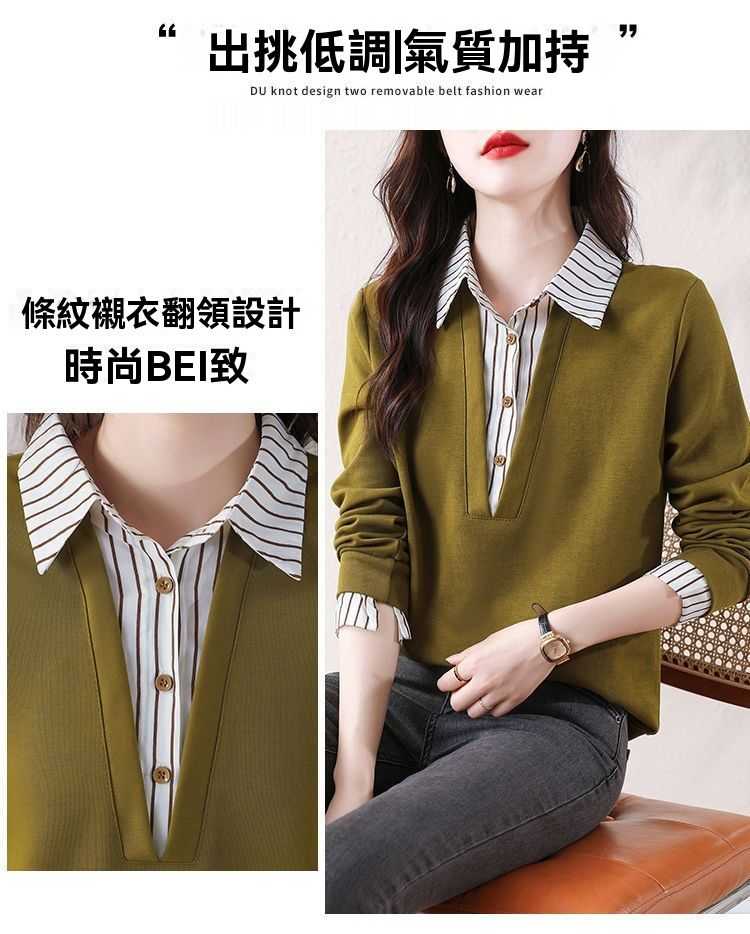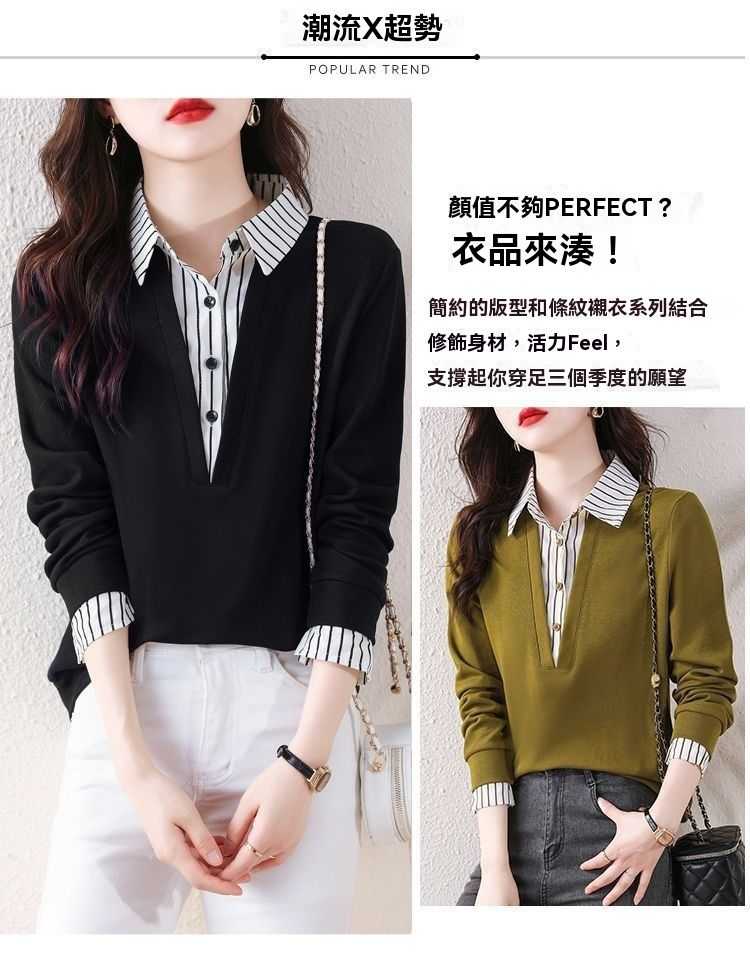 假兩件條紋時尚減齡拼接衛衣【買一送一】黃色+黑色各一件(到手2件,每件均價649元!)