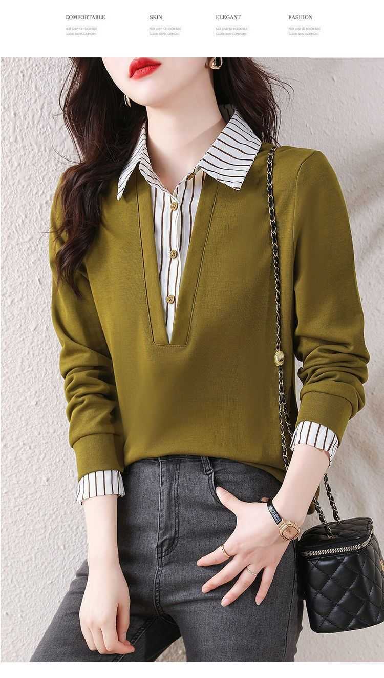 假兩件條紋時尚減齡拼接衛衣(加400秒殺3件!)藏青色+黃色+黑色各一件(到手3件,每件均價566元!)