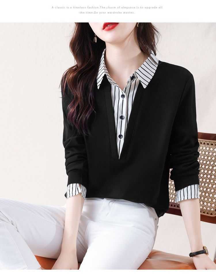 假兩件條紋時尚減齡拼接衛衣【買一送一】藏青色+黑色各一件(到手2件,每件均價649元!)