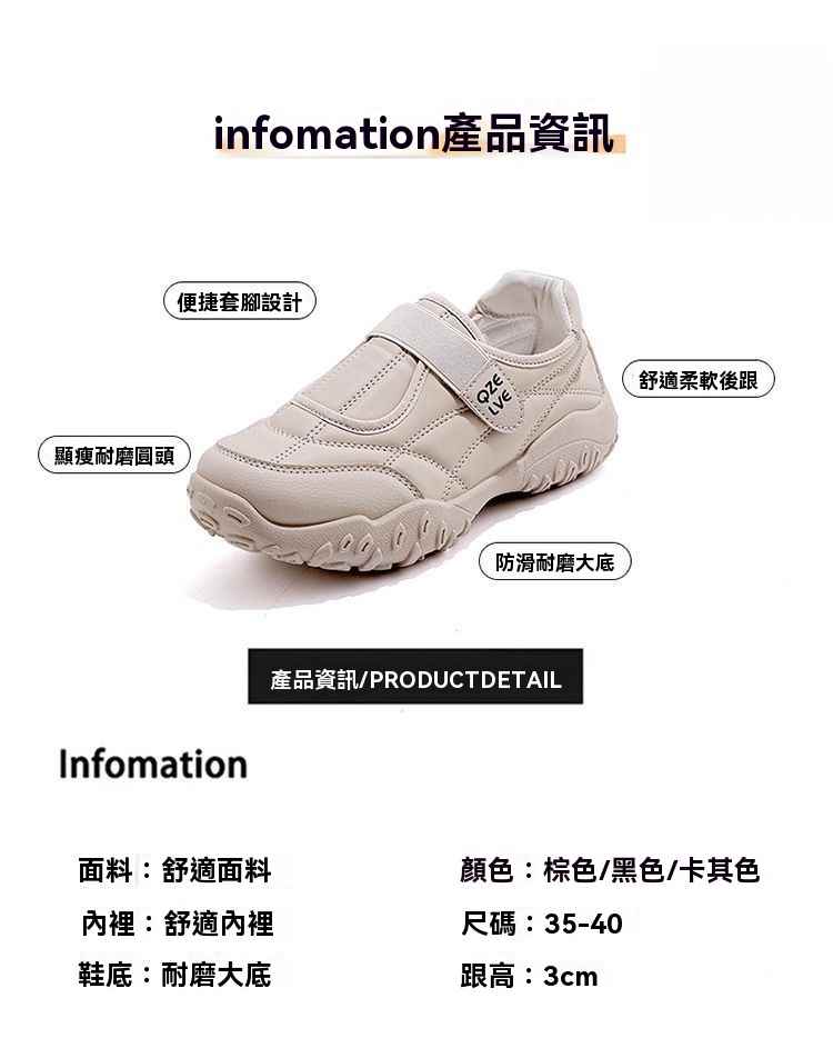 魔術貼輕便軟底防滑女鞋【買一送一】【卡其色】+【棕色】各一雙(到手兩雙,每雙均價549元!)