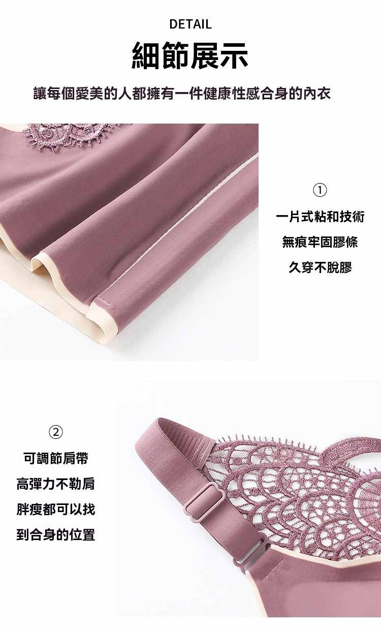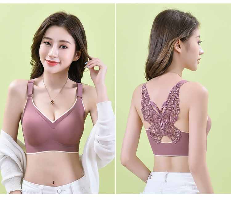 春夏蝴蝶美背聚攏大碼女士內衣【買一送二】【紫色】+【黑色】+【膚色】各一件(到手3件,每件均價333元!)