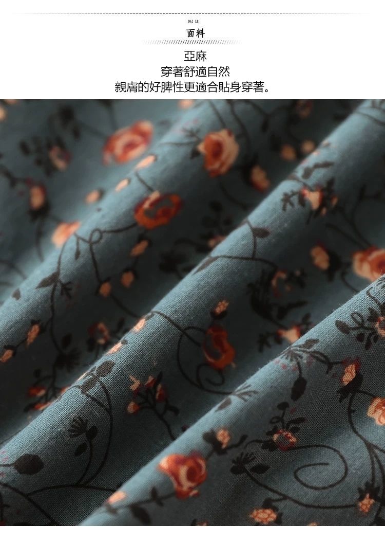 高腰顯瘦中長款棉麻碎花裙【買一送一】【灰藍色】兩條(到手兩條,每條均價549元)