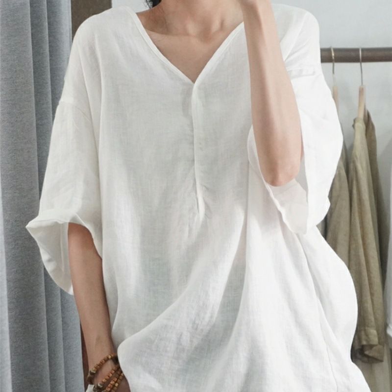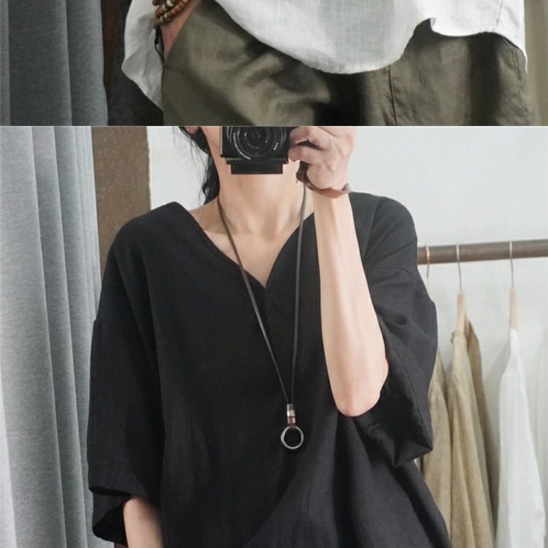 半袖棉麻休閒上衣【黑色】+【白色】各一件(到手兩件,每件均價499元)