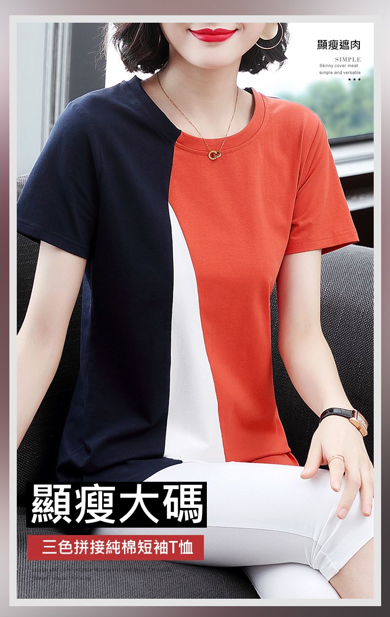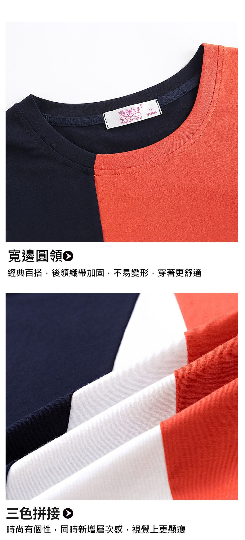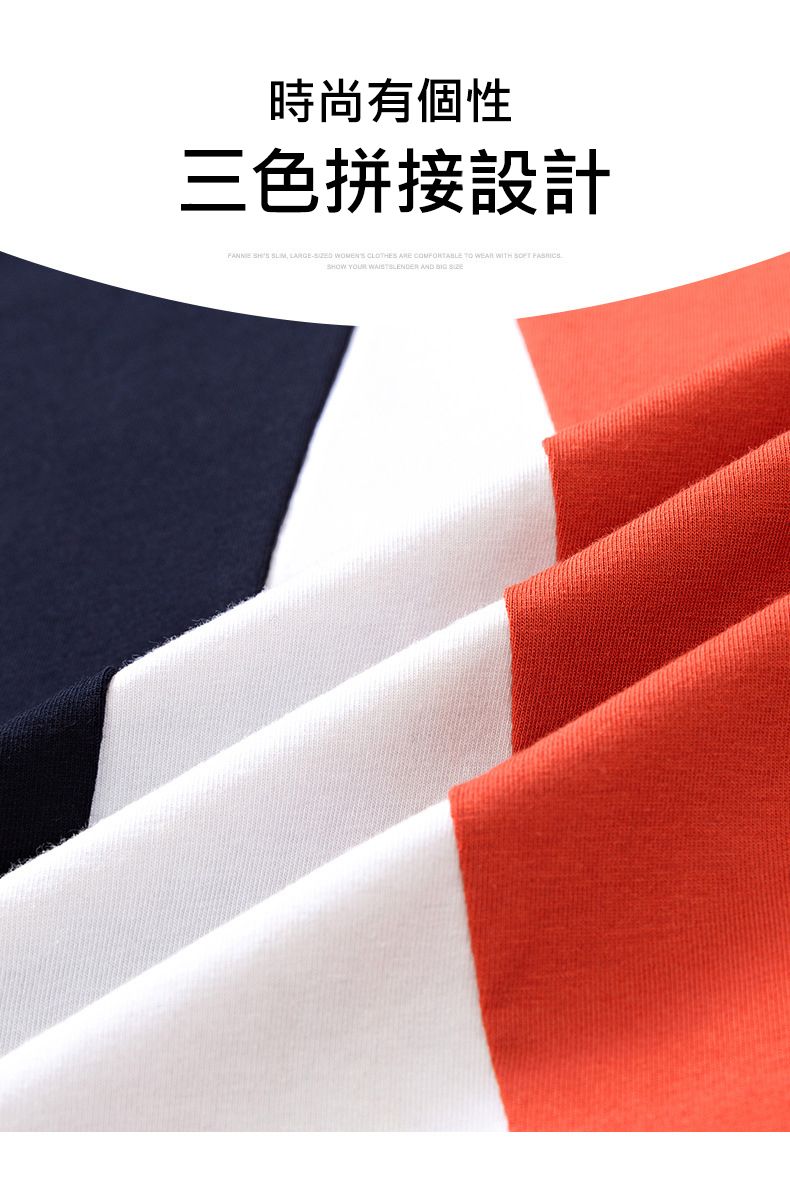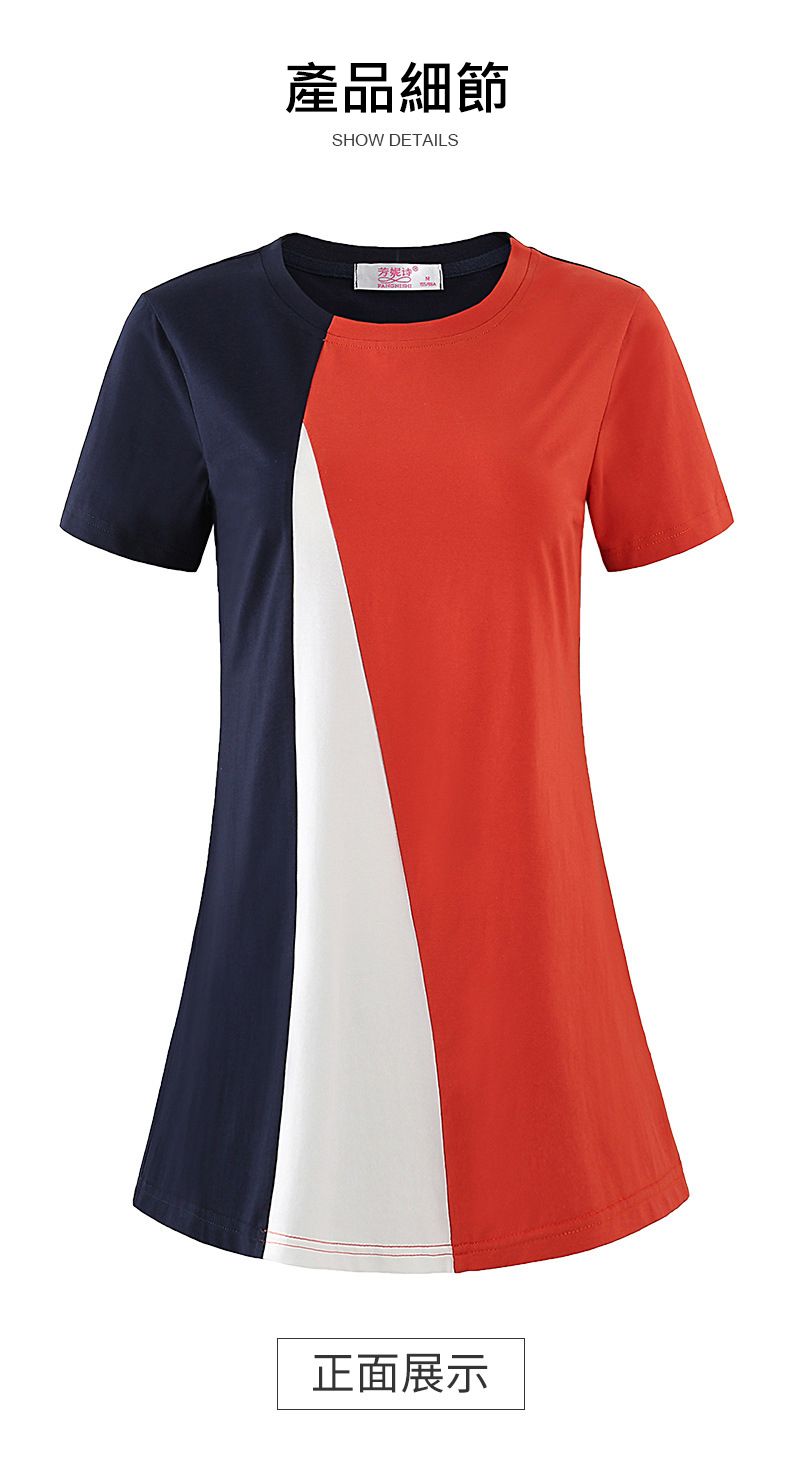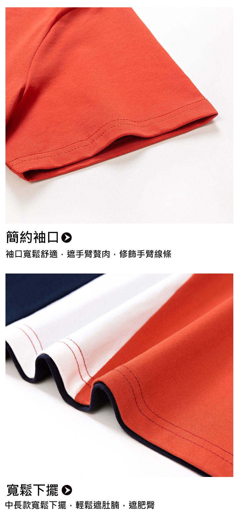 三色拼接中長款上衣【買一送一】【淺藍色】+【橘色】各一件(每件499元)