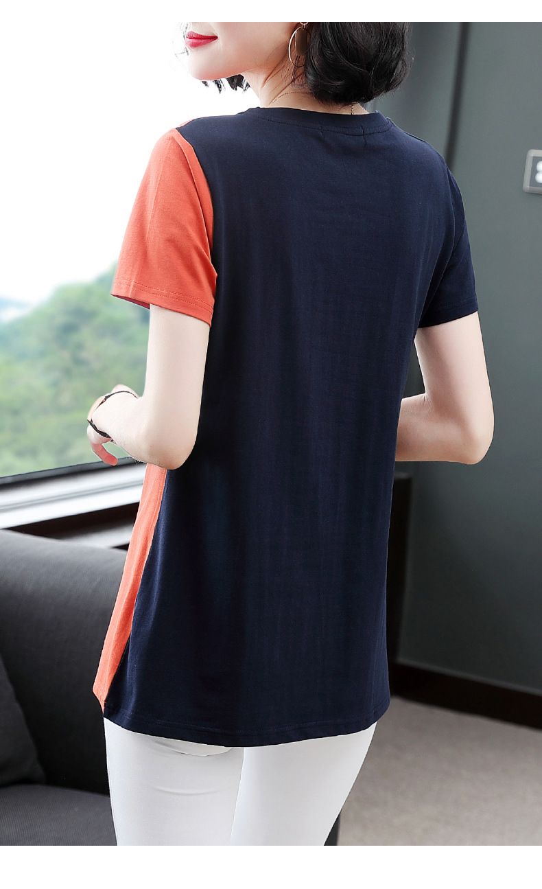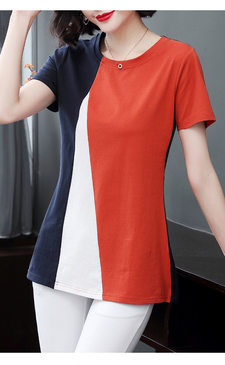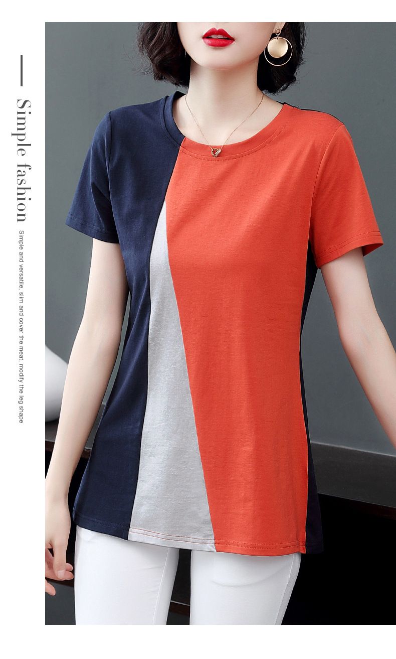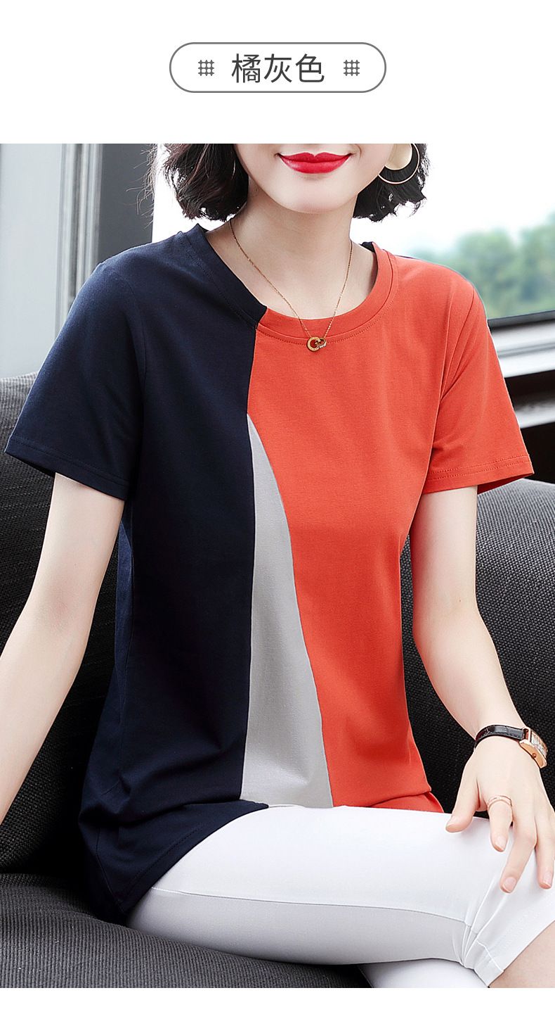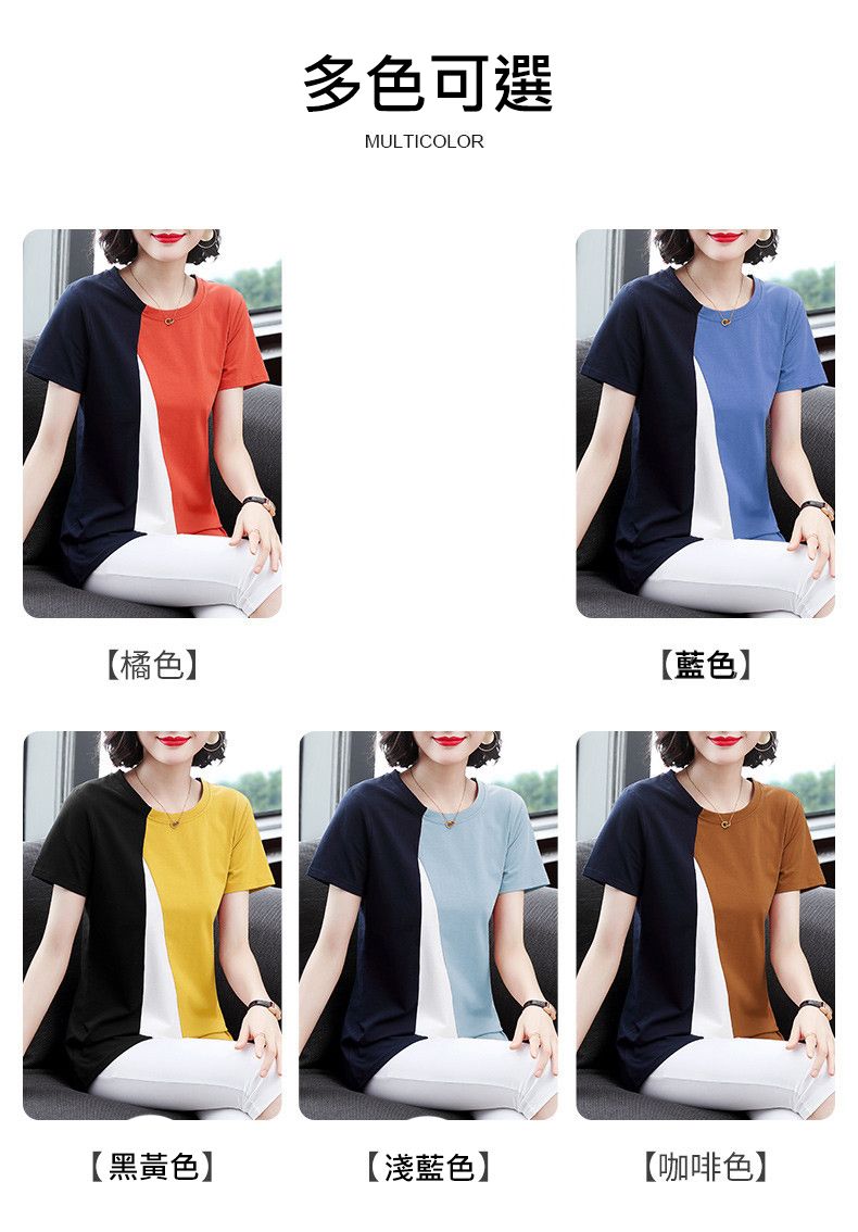三色拼接中長款上衣【買一送一】【淺藍色】+【橘色】各一件(每件499元)