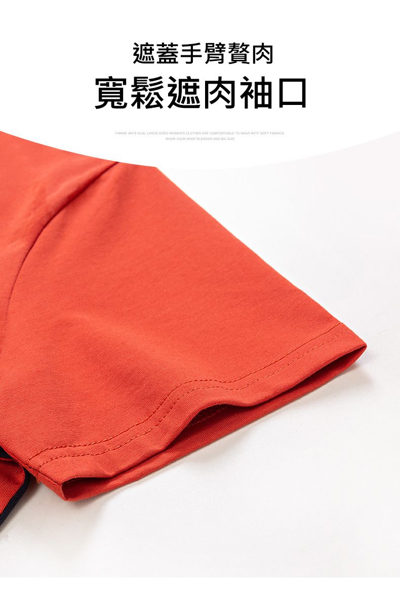 三色拼接中長款上衣【買一送一】【咖啡色】+【橘色】各一件(每件499元)