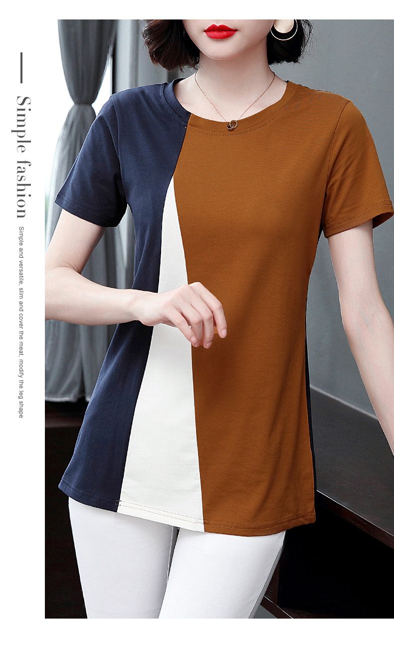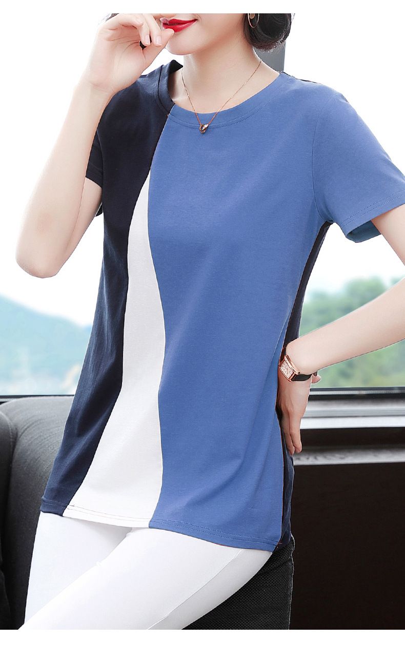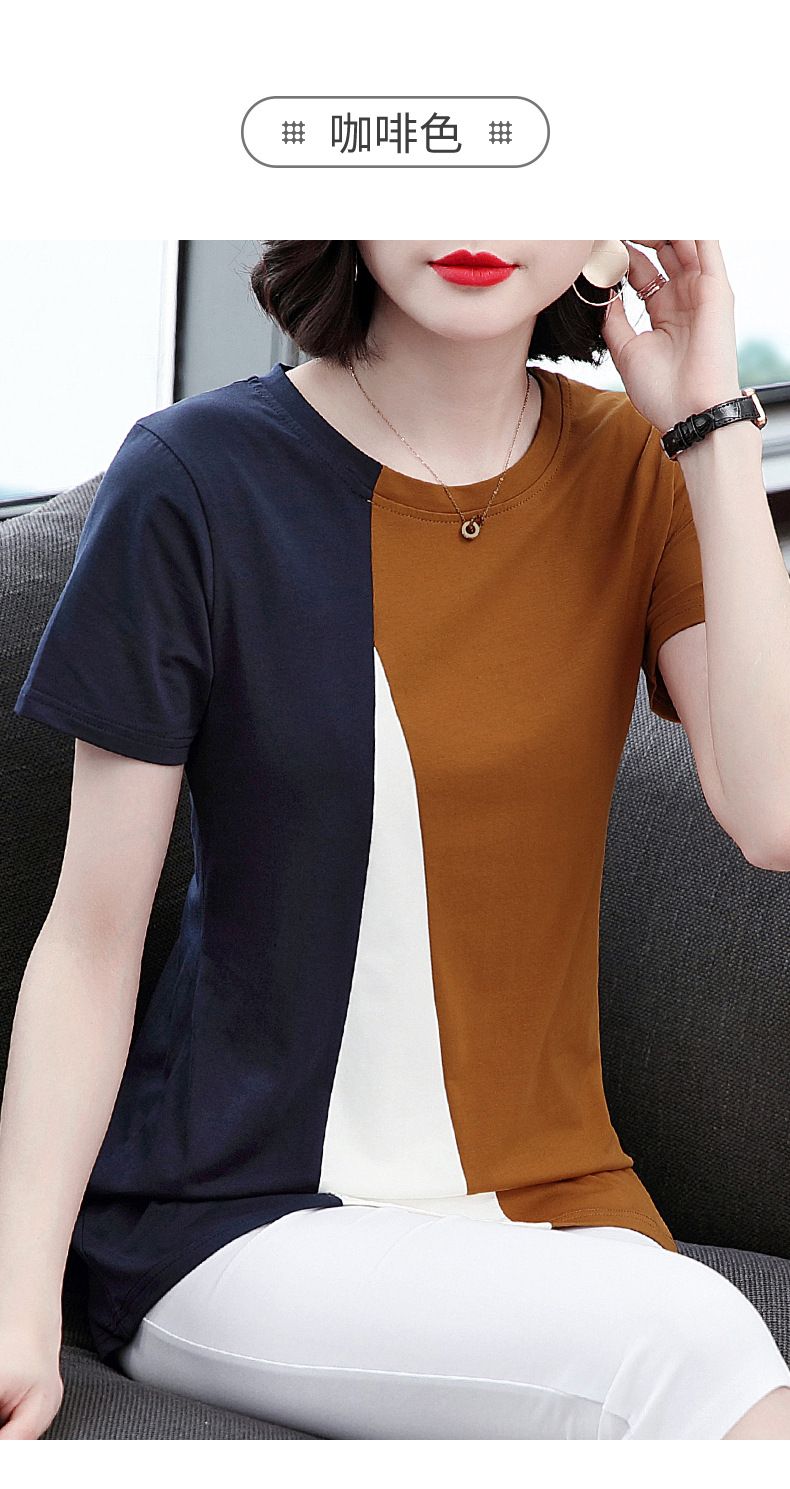 三色拼接中長款上衣【買一送一】【淺藍色】+【咖啡色】各一件(每件499元)
