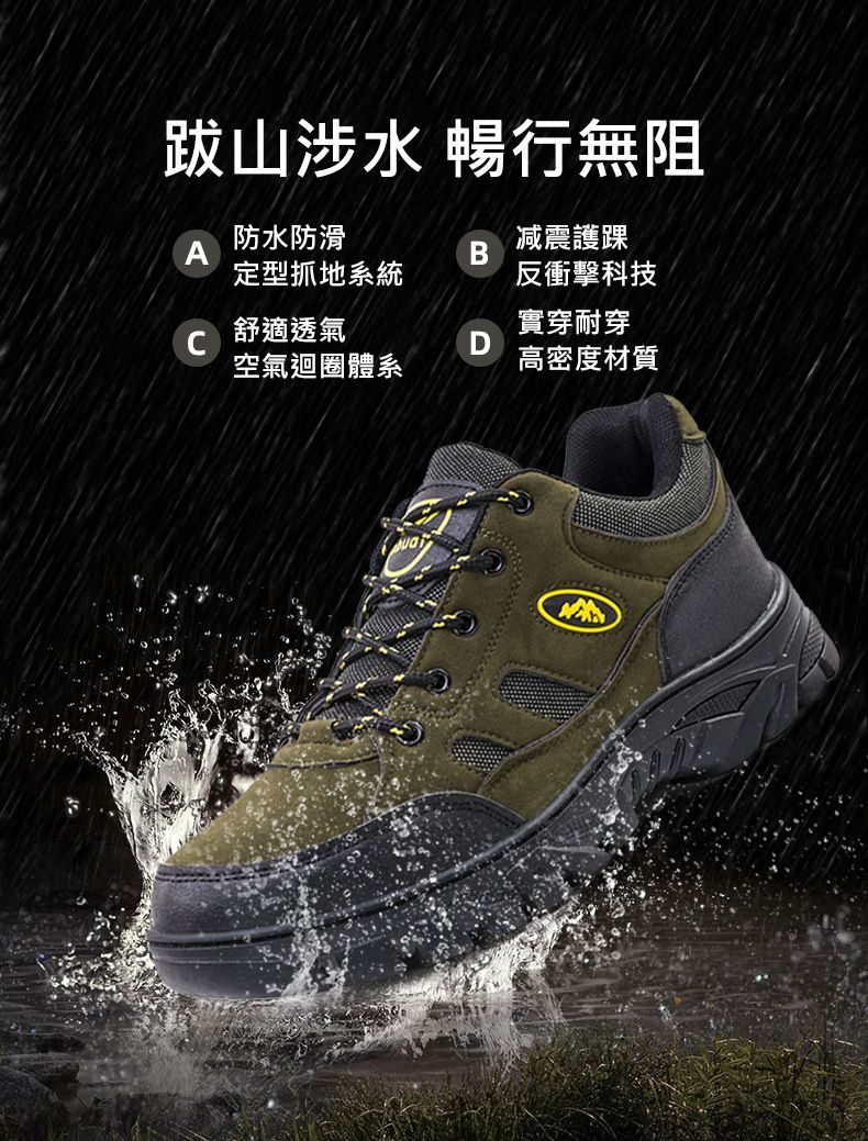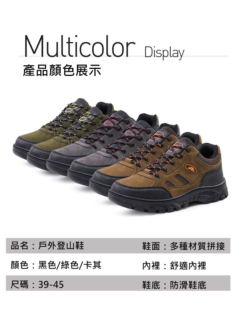 戶外低幫輕便舒適透氣科技防滑徒步鞋【綠色】+【咖色】各一雙(優惠400)