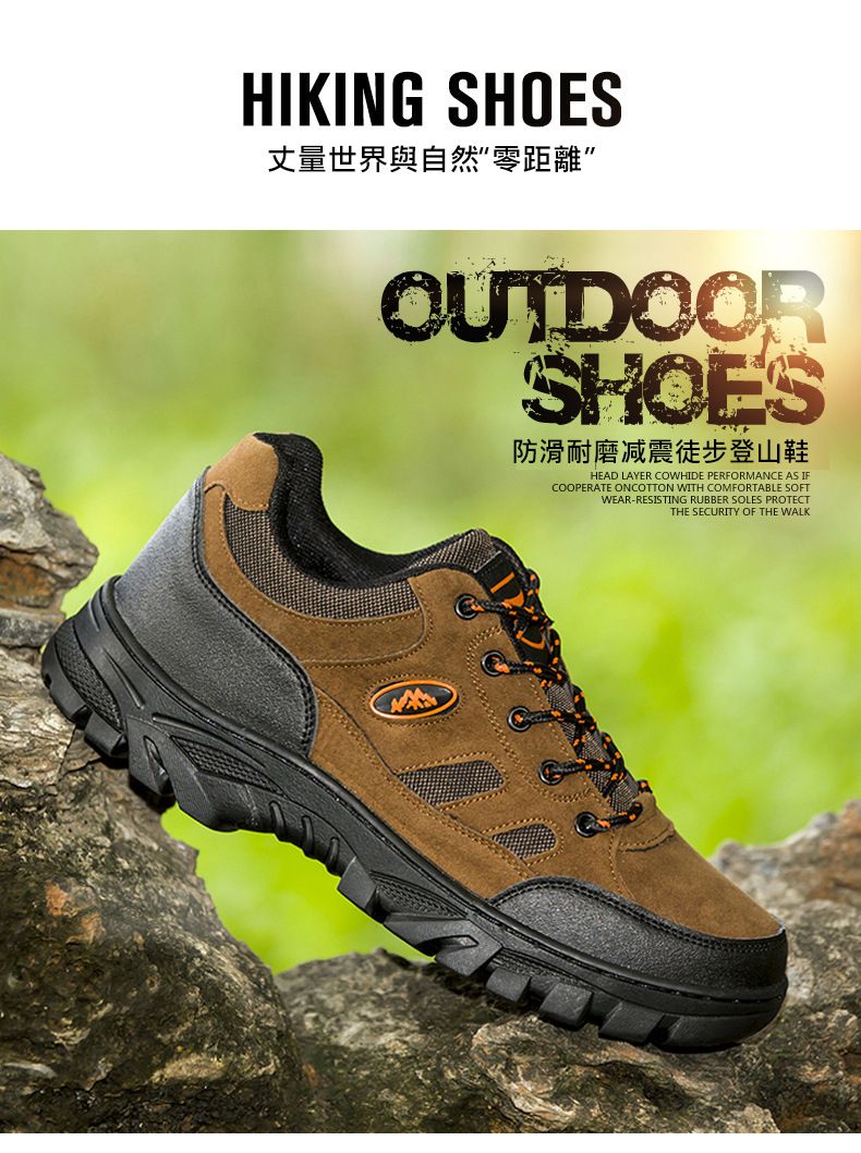 戶外低幫輕便舒適透氣科技防滑徒步鞋【灰色】+【咖色】各一雙(優惠400)