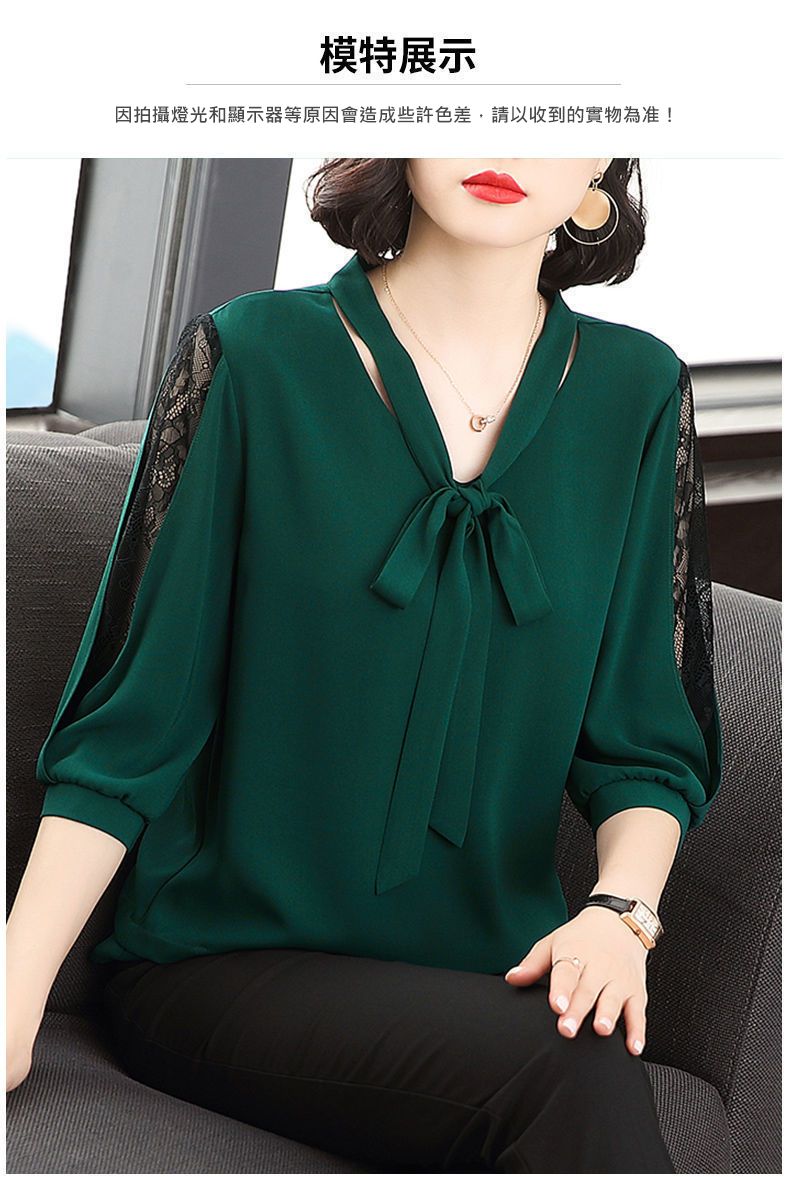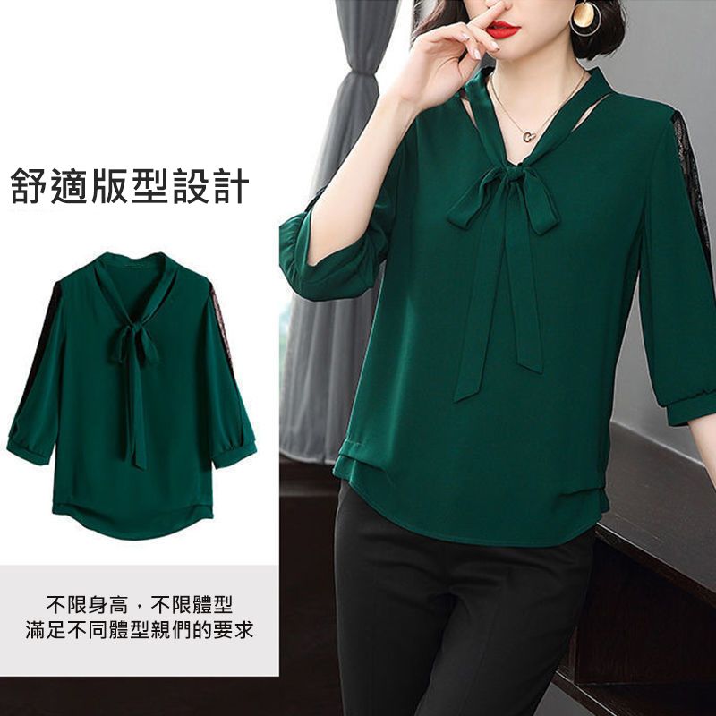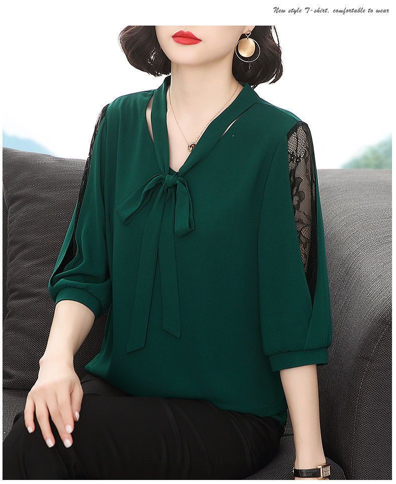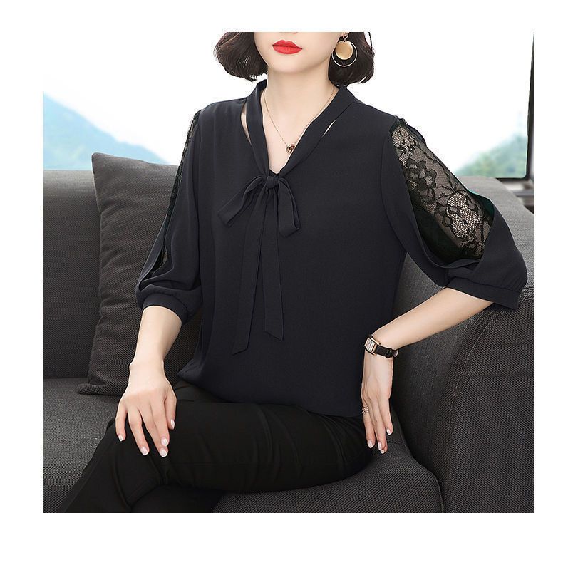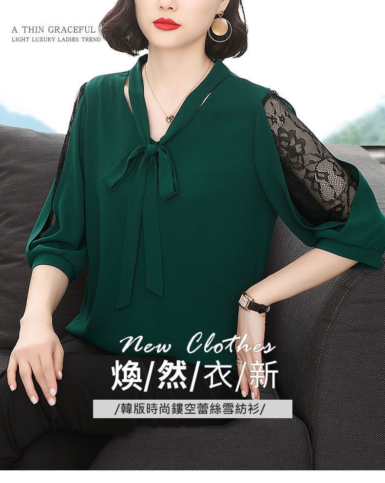洋氣新款中年媽媽寬鬆遮肚雪紡衫【買一送一】黑色+綠色各一件(到手兩件,每件549元!)