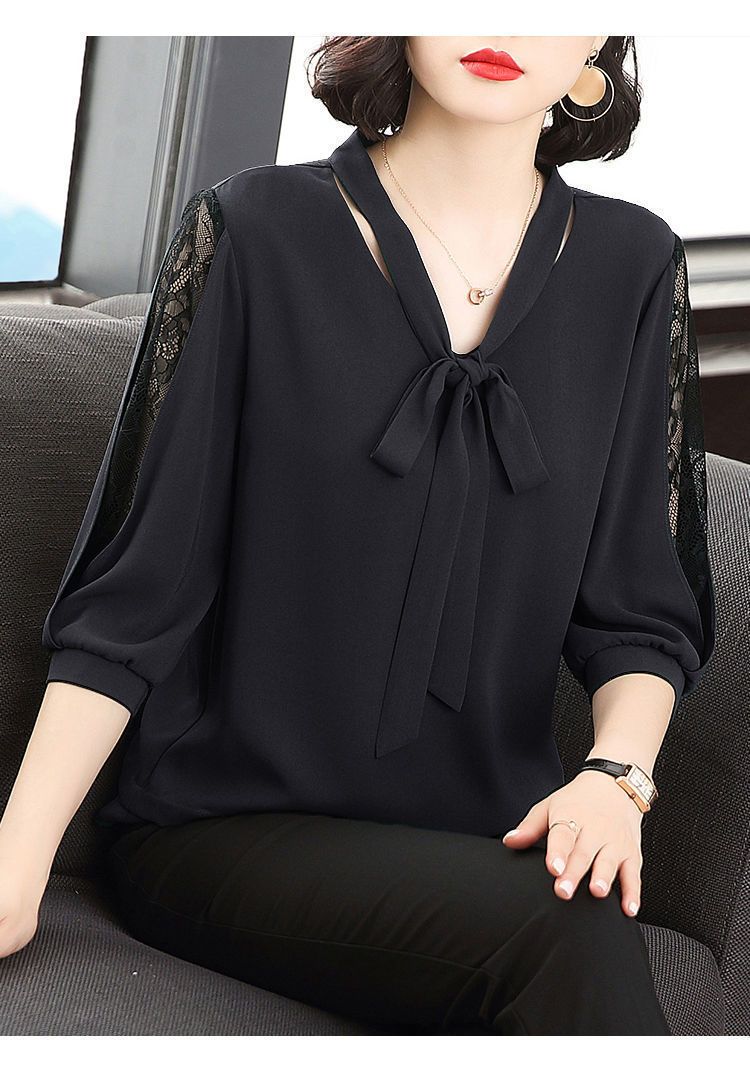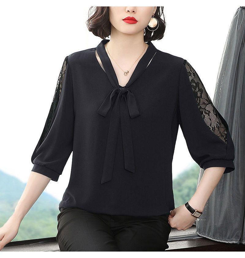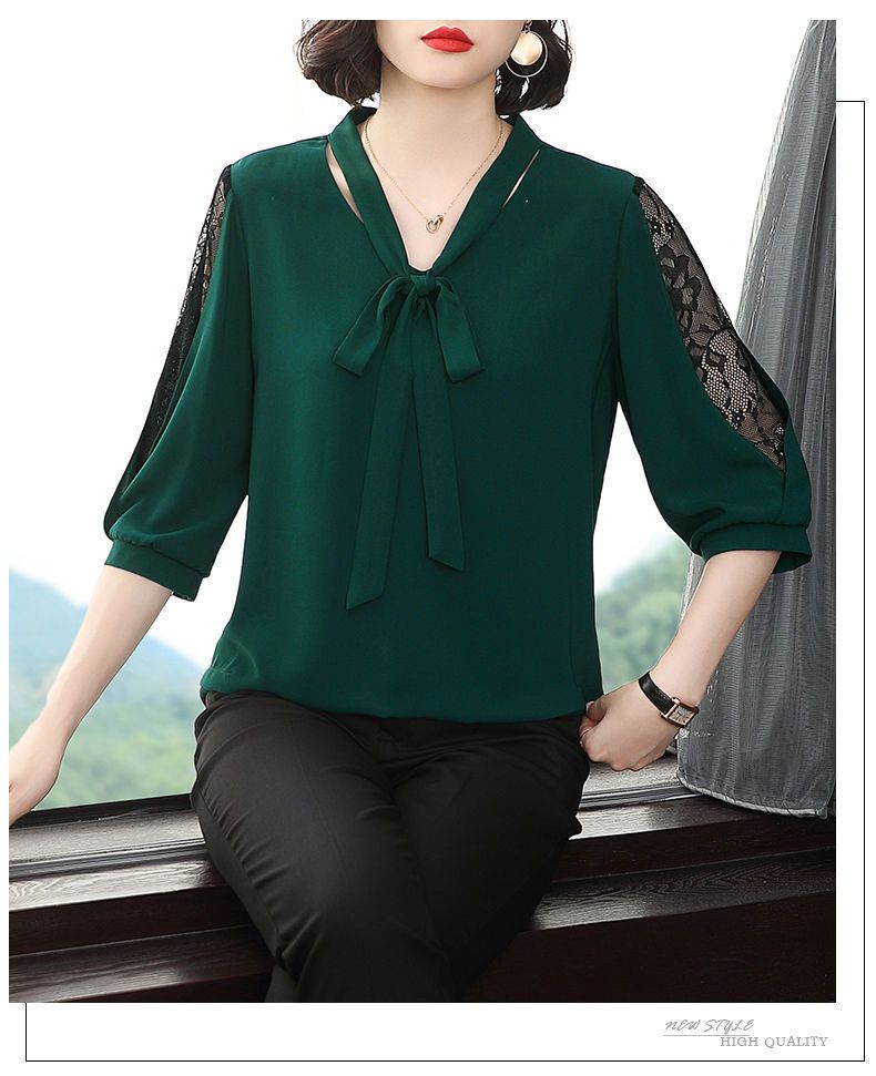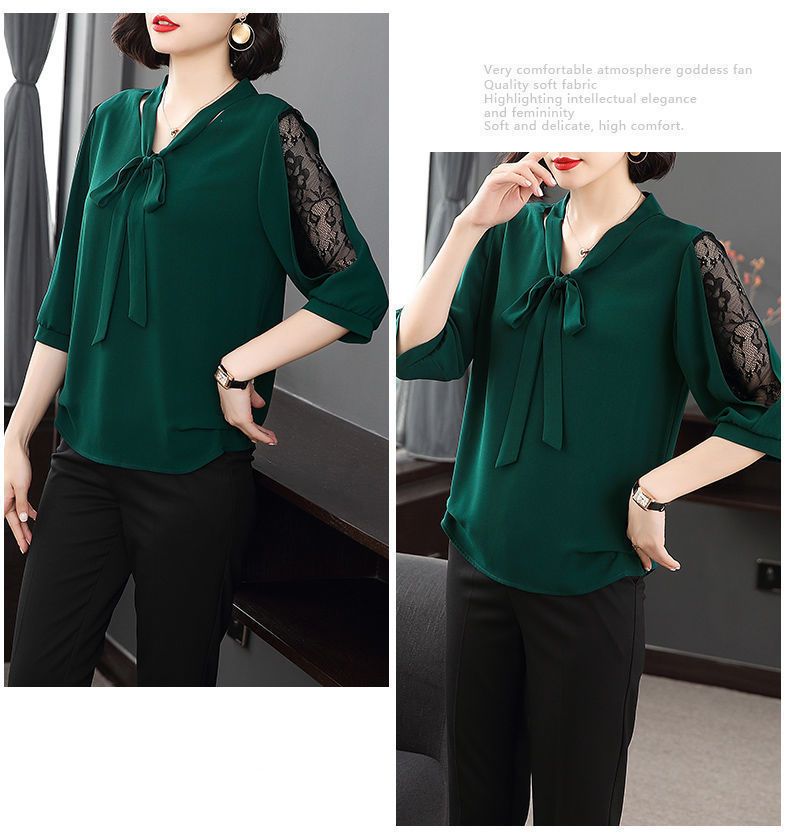 洋氣新款中年媽媽寬鬆遮肚雪紡衫【買一送一】黑色+綠色各一件(到手兩件,每件549元!)