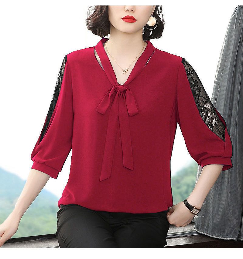 洋氣新款中年媽媽寬鬆遮肚雪紡衫【買一送一】紅色+綠色各一件(到手兩件,每件549元!)