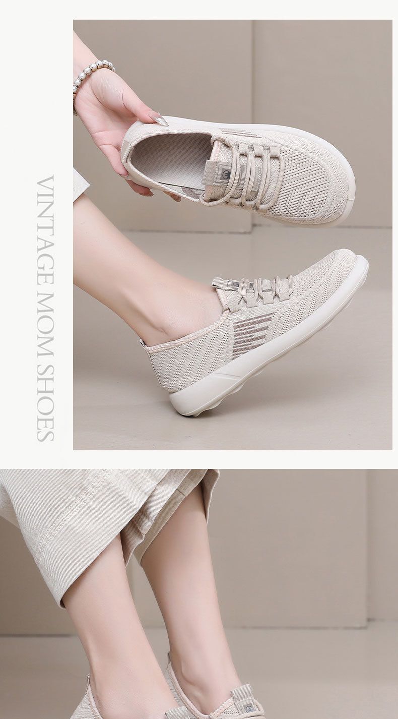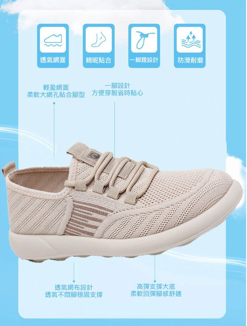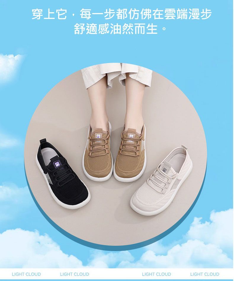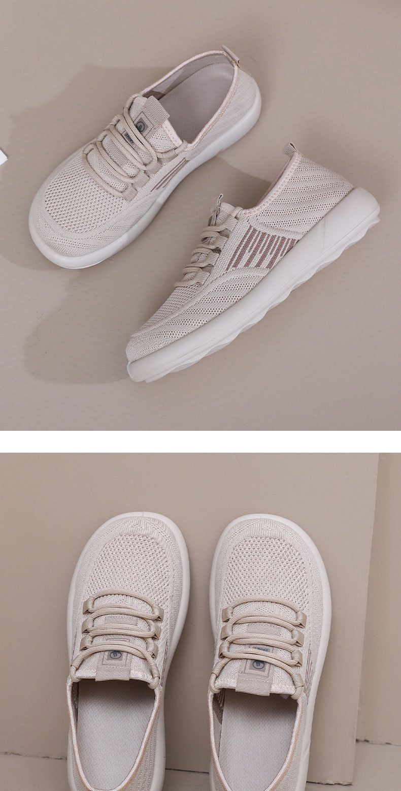 貼合腳部曲線舒適繫帶柔軟透氣飛織鞋【買一送一】【米白色】兩雙(到手兩雙,每雙均價549元!)