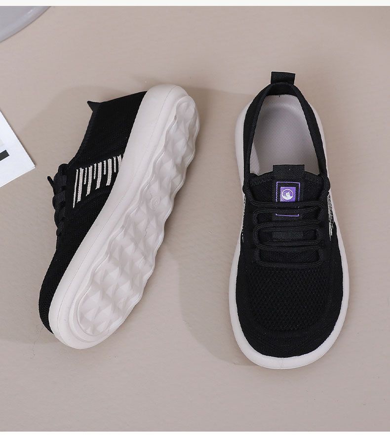 貼合腳部曲線舒適繫帶柔軟透氣飛織鞋【買一送一】【黑色】+【米白色】各一雙(到手兩雙,每雙均價549元!)