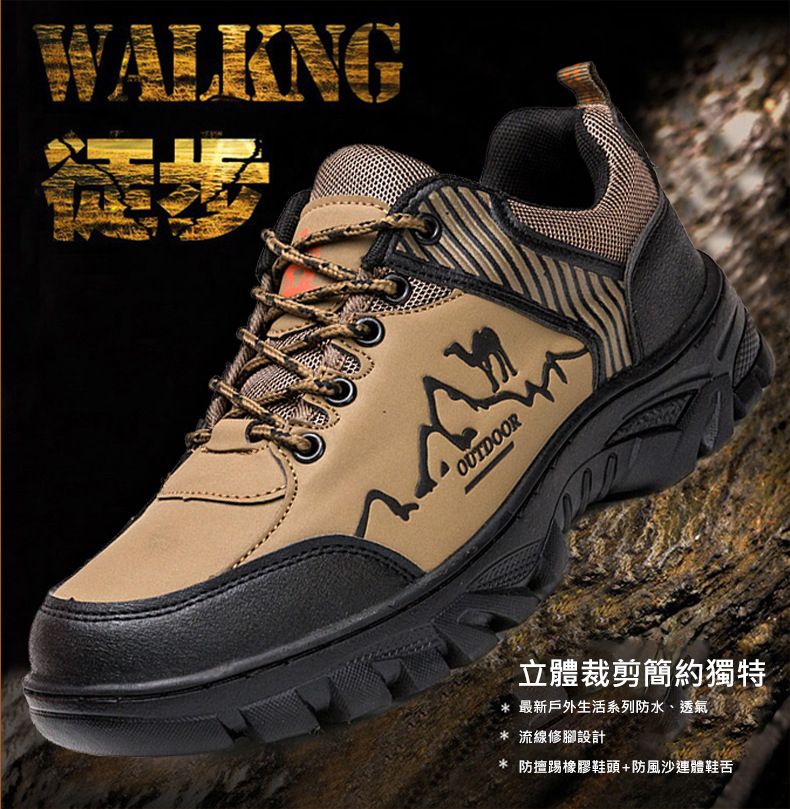 超強防水透氣內裡防滑耐磨戶外男鞋【灰色】+【咖色】各一雙(優惠400)