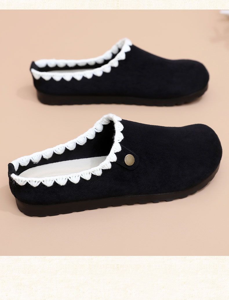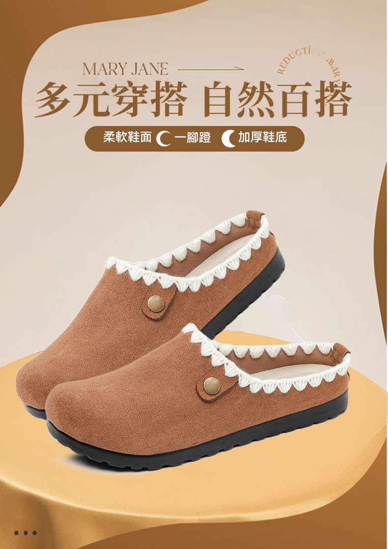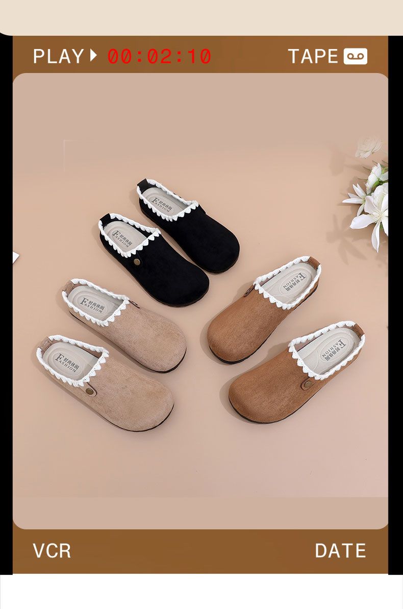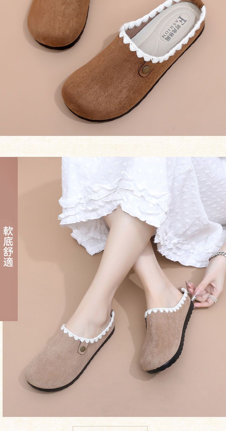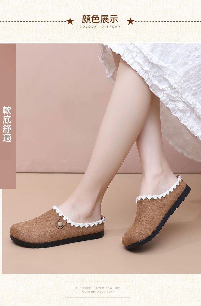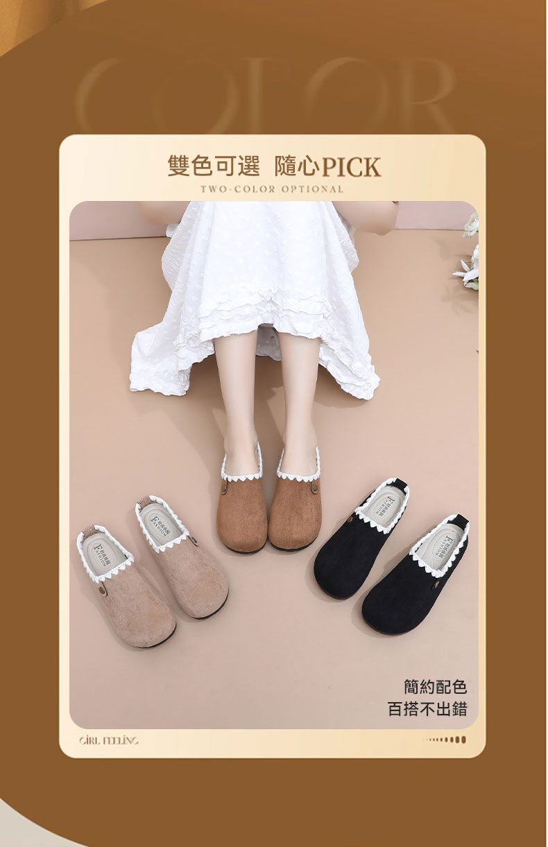絨布面復古減齡圓頭懶人鞋【買一送一】黑色+駝色各一雙(到手兩雙,每雙均價649元!)