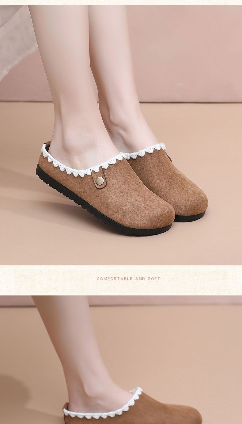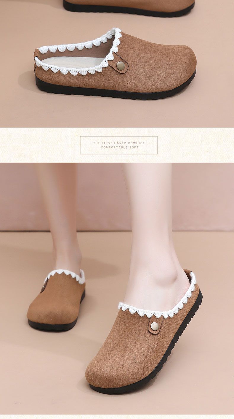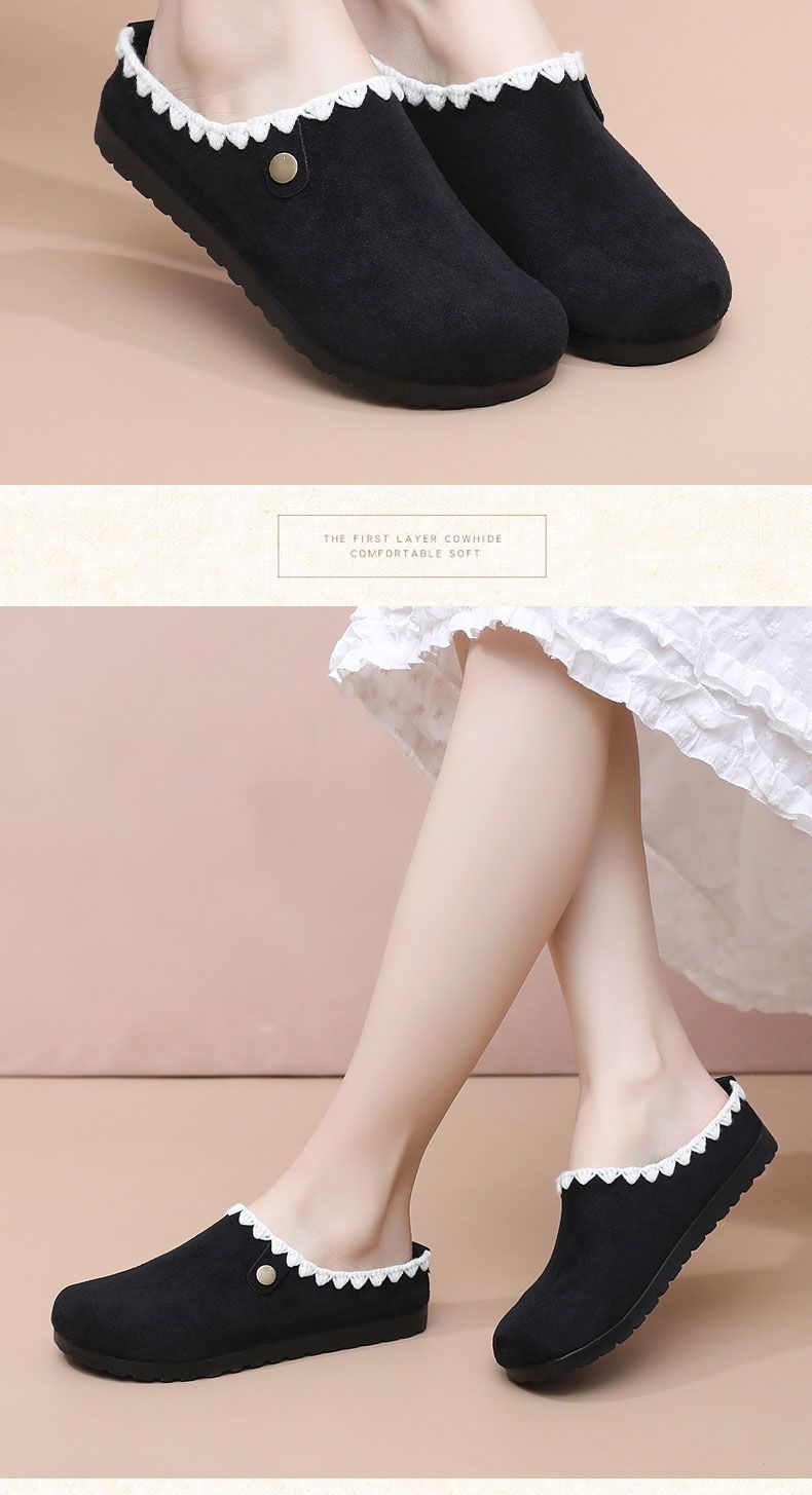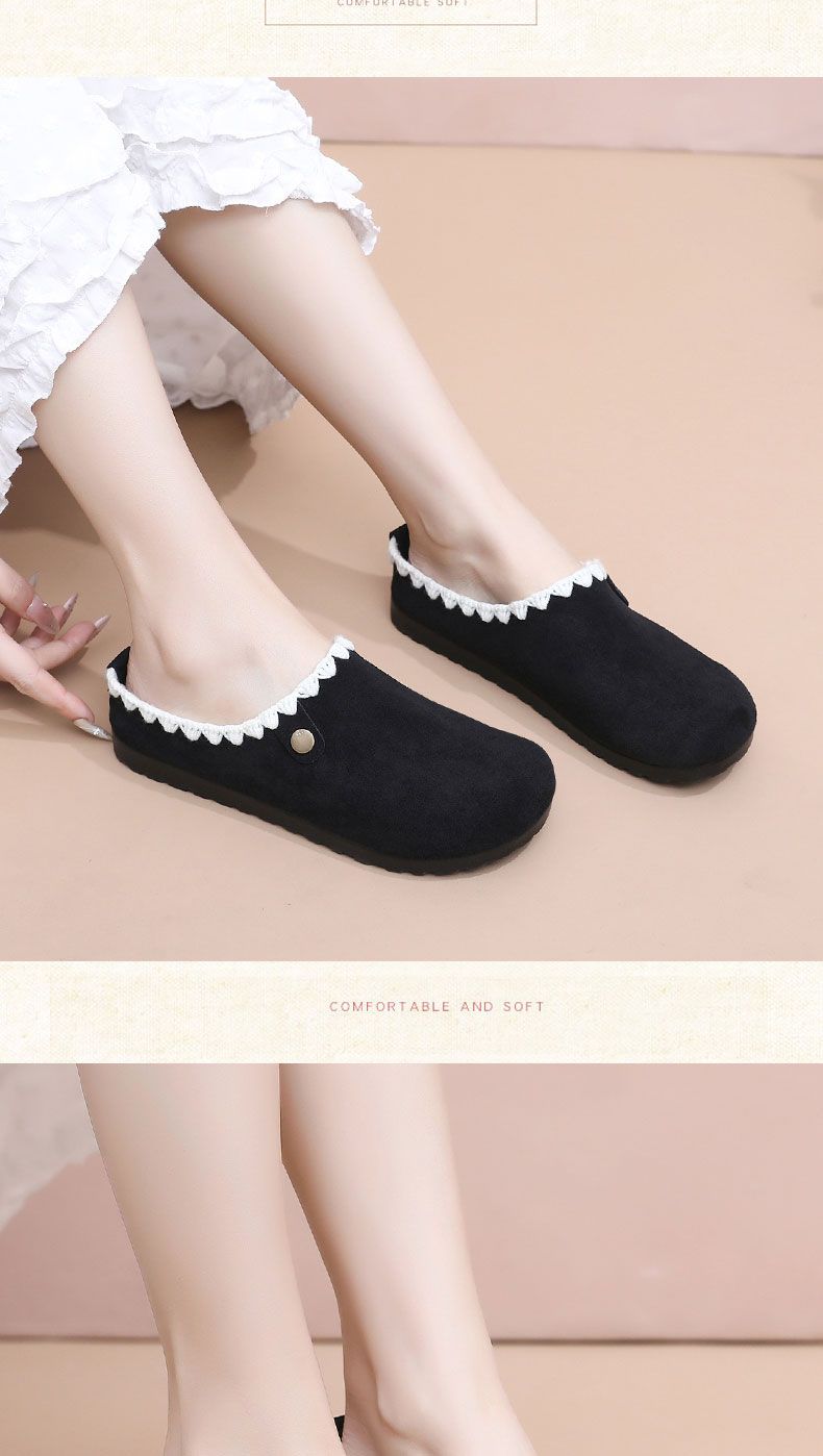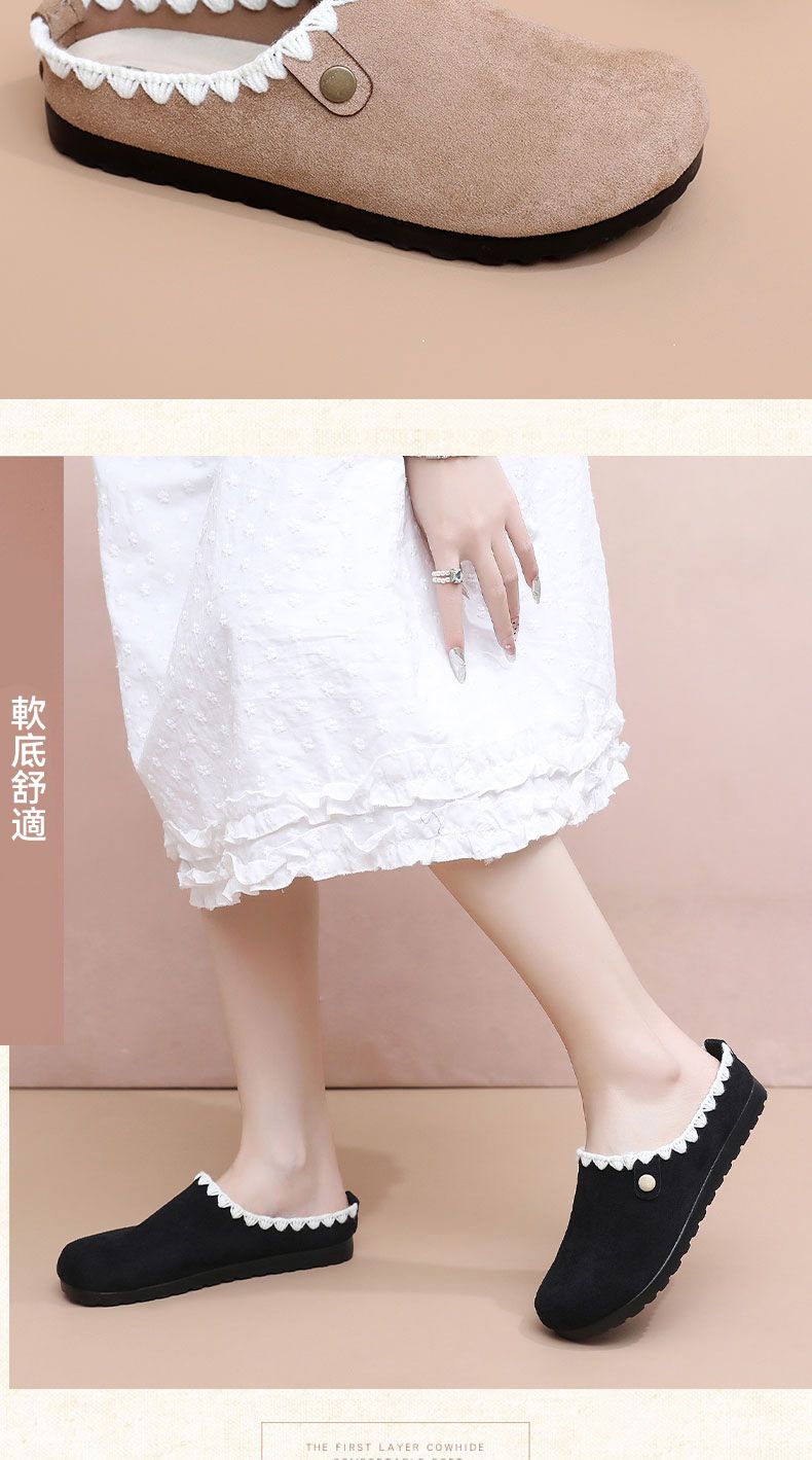 絨布面復古減齡圓頭懶人鞋【買一送一】黑色+駝色各一雙(到手兩雙,每雙均價649元!)