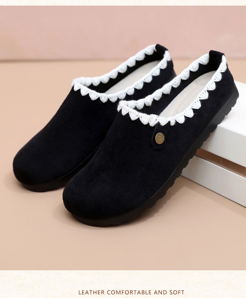 絨布面復古減齡圓頭懶人鞋【買一送一】黑色+綠色各一雙(到手兩雙,每雙均價649元!)