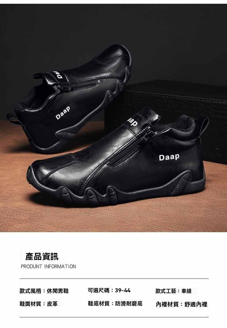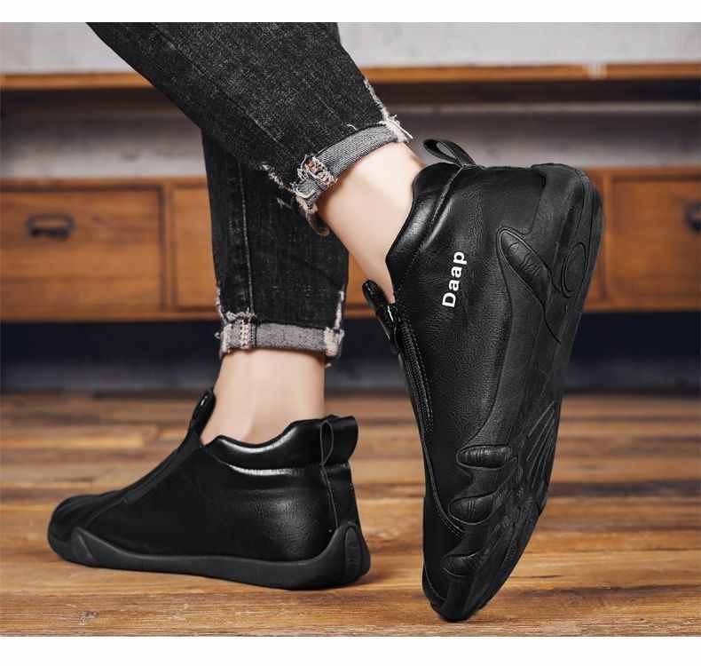 高幫秋季戶外百搭休閒皮鞋【黑色】一雙