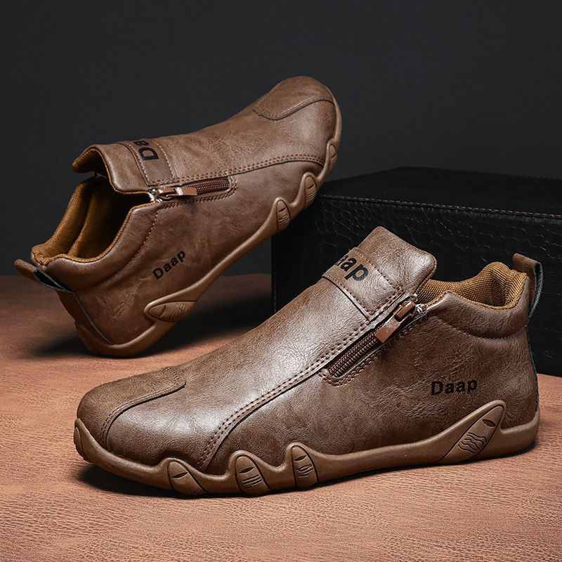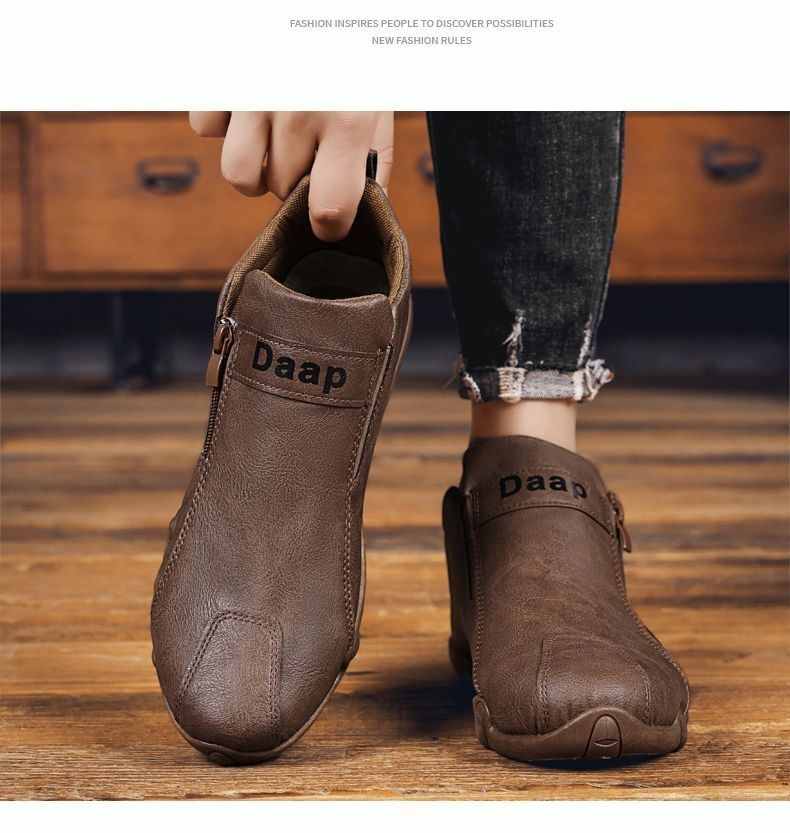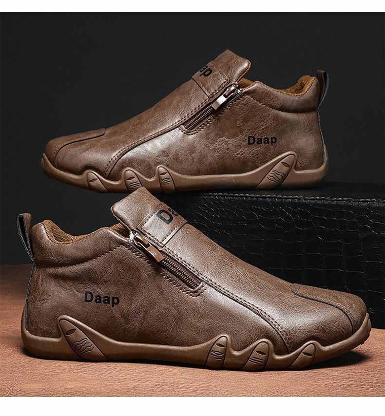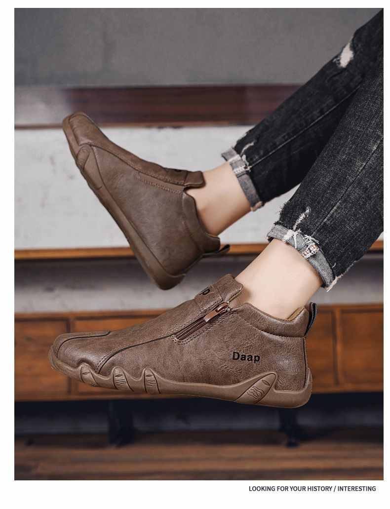 高幫秋季戶外百搭休閒皮鞋【黑色】+【卡其色】各一雙(優惠400!到手2雙!每雙均價798元!)