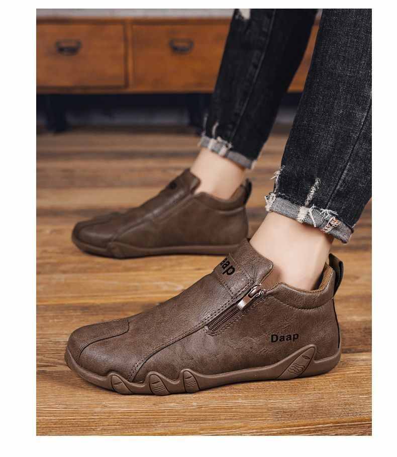 高幫秋季戶外百搭休閒皮鞋【卡其色】一雙