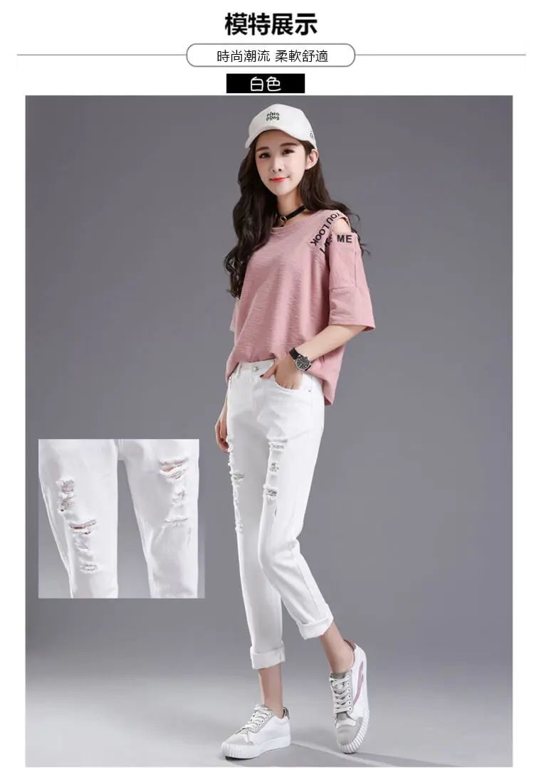 顯高顯瘦經典四色新款破洞牛仔褲【買一送一】【白色】+【淺藍】各一條(到手兩條,每條均價649元)