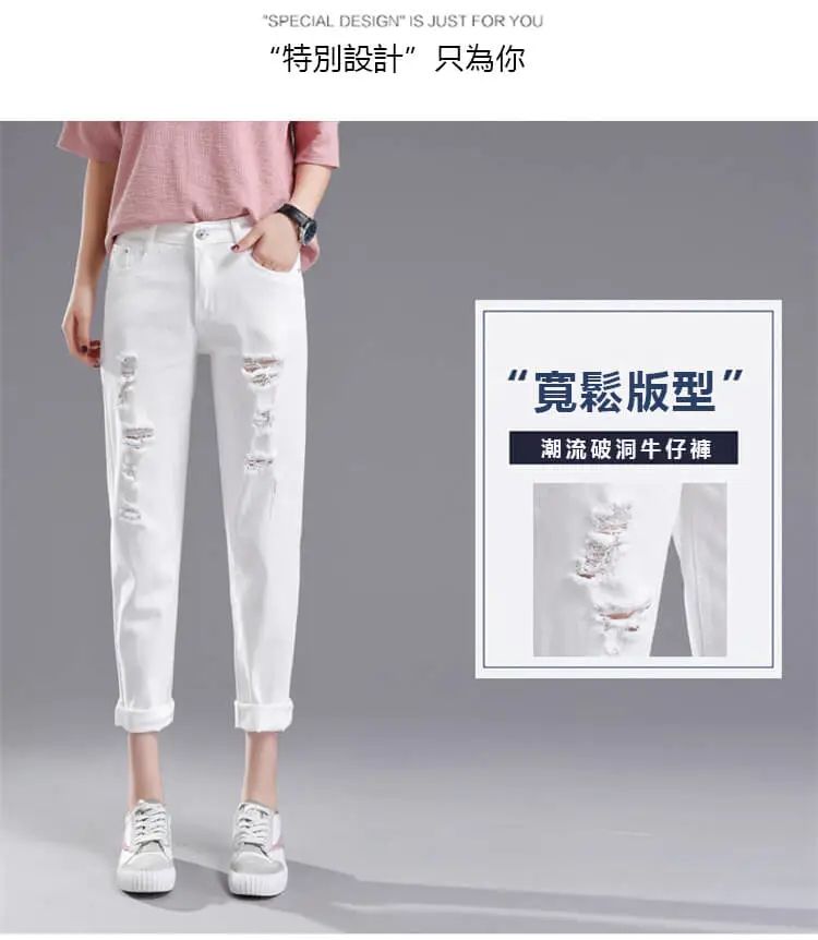 顯高顯瘦經典四色新款破洞牛仔褲【買一送一】【白色】+【深藍】各一條(到手兩條,每條均價649元)