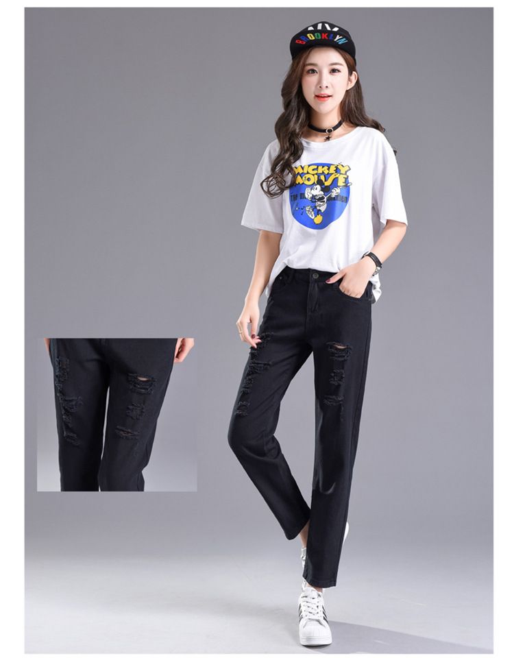 顯高顯瘦經典四色新款破洞牛仔褲【買一送一】【黑色】+【深藍】各一條(到手兩條,每條均價649元)
