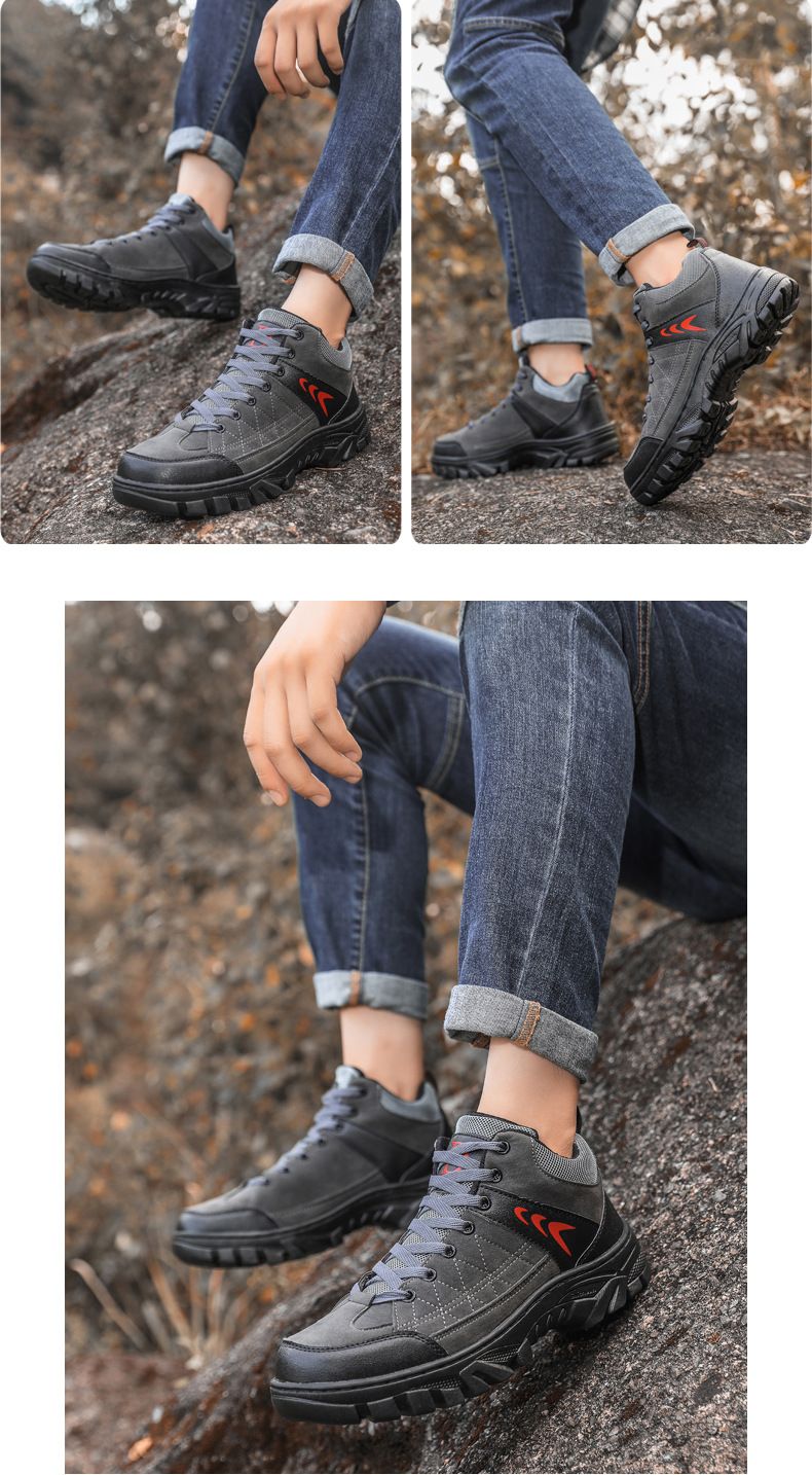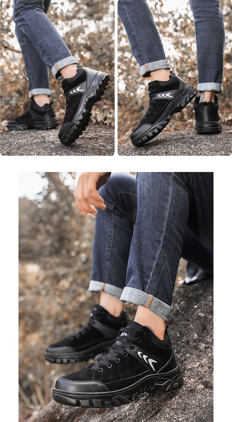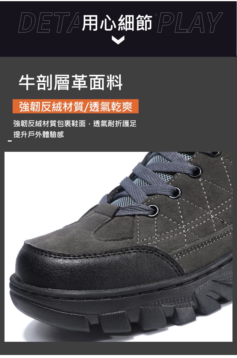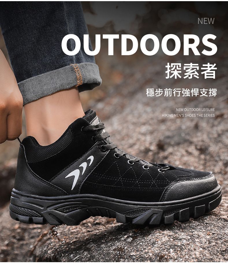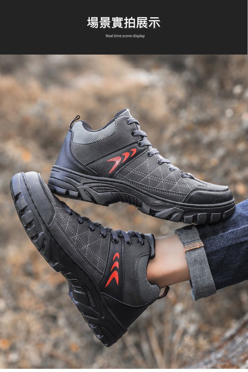 【硬核裝備】中幫繫帶耐髒戶外登山男鞋【黑色】+【灰色】各一雙(優惠400)