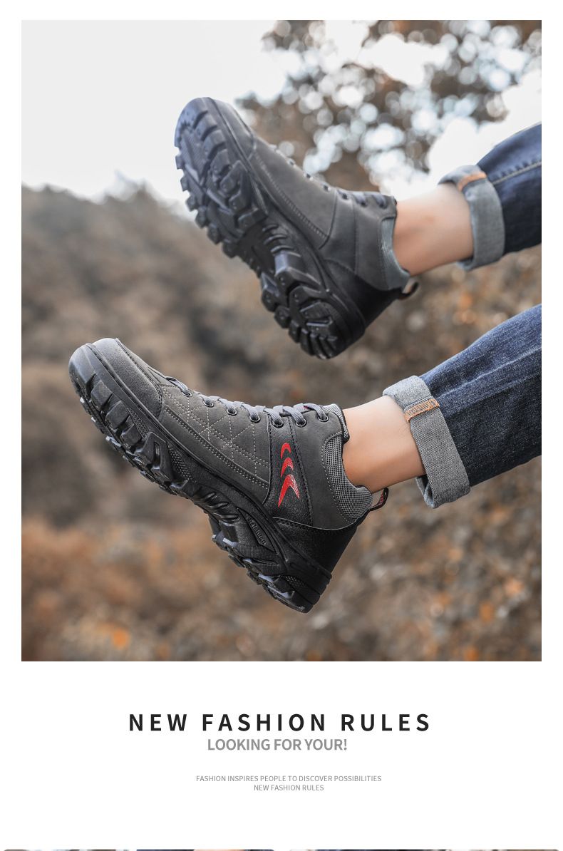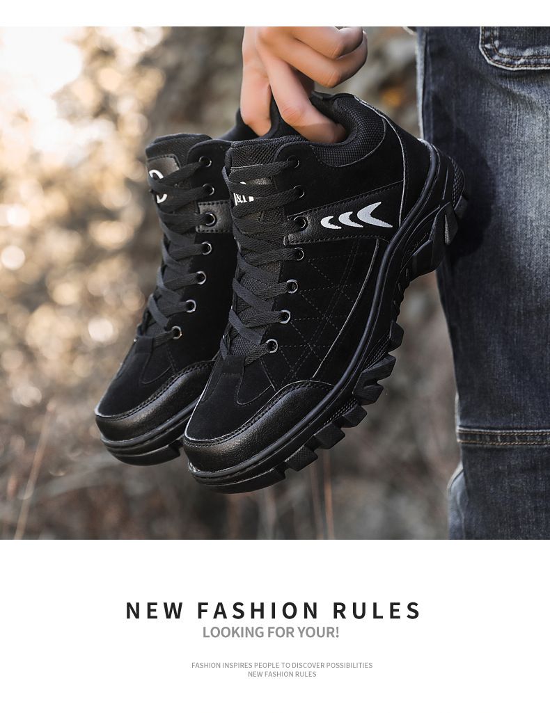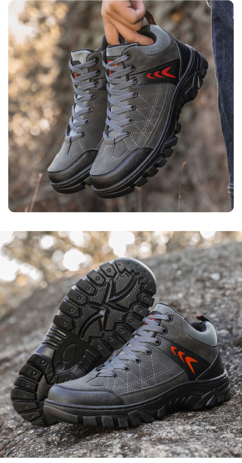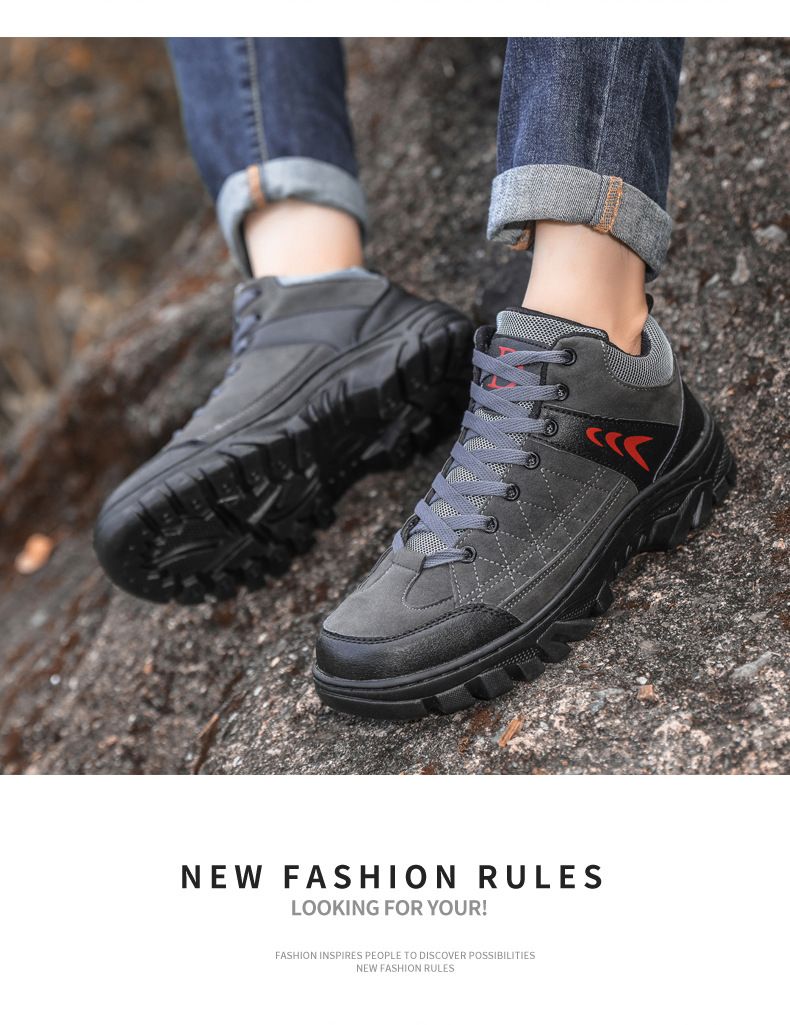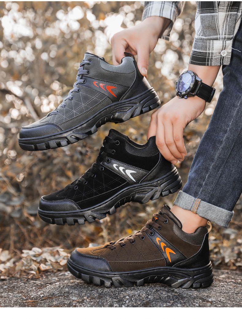 【硬核裝備】中幫繫帶耐髒戶外登山男鞋【黑色】+【灰色】各一雙(優惠400)