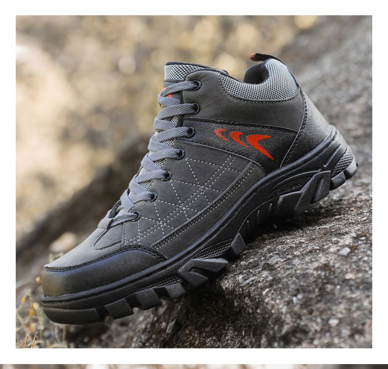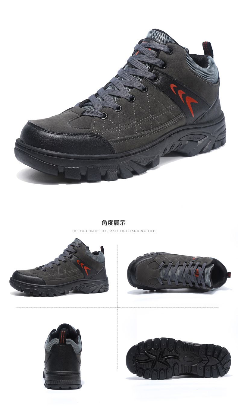 【硬核裝備】中幫繫帶耐髒戶外登山男鞋【灰色】一雙