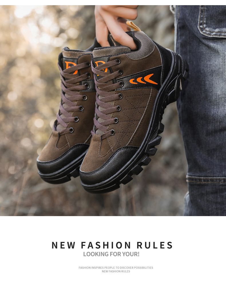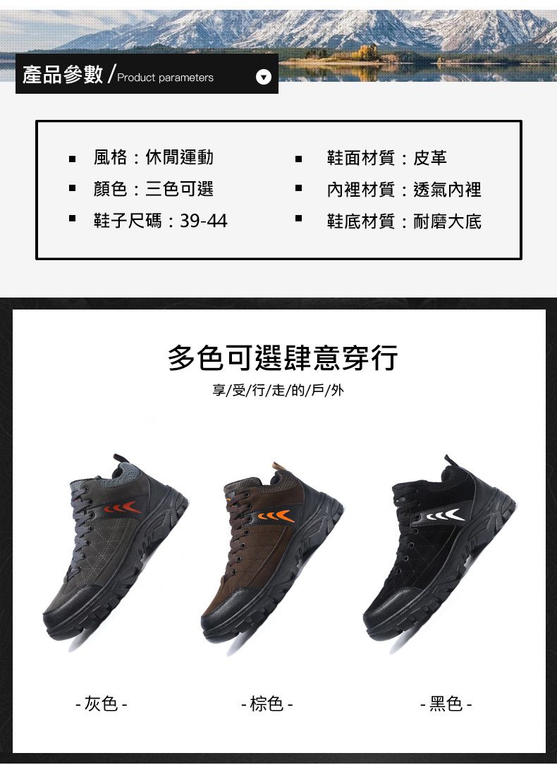 【硬核裝備】中幫繫帶耐髒戶外登山男鞋【灰色】+【棕色】各一雙(優惠400)