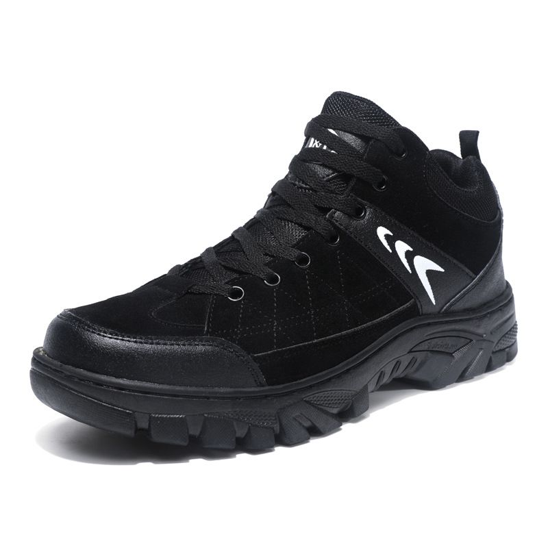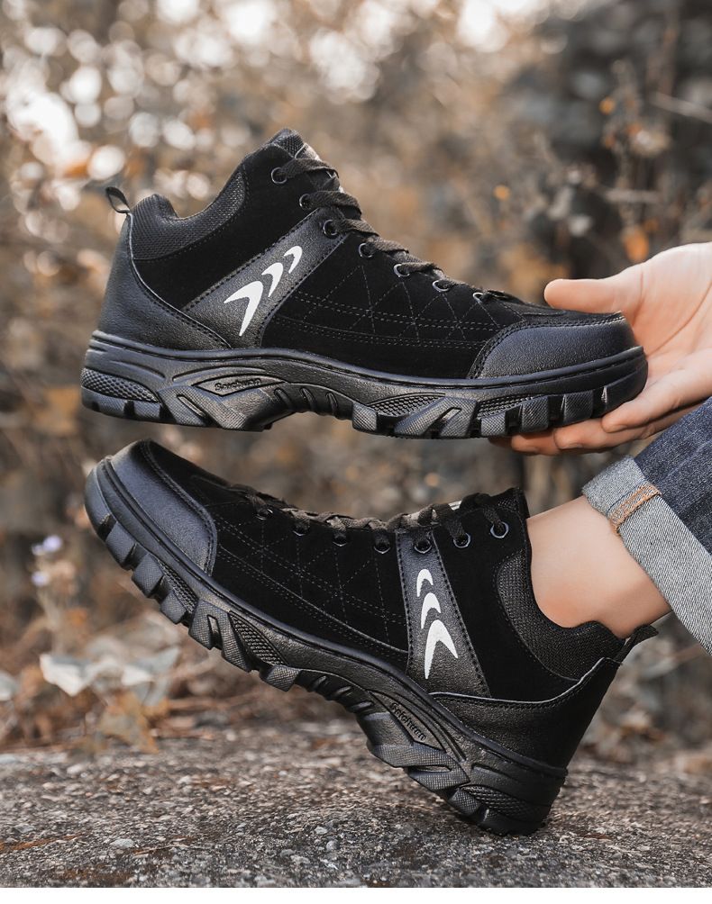 【硬核裝備】中幫繫帶耐髒戶外登山男鞋【黑色】一雙