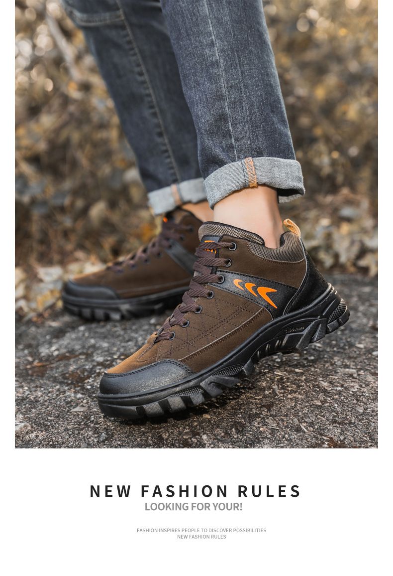 【硬核裝備】中幫繫帶耐髒戶外登山男鞋【棕色】一雙