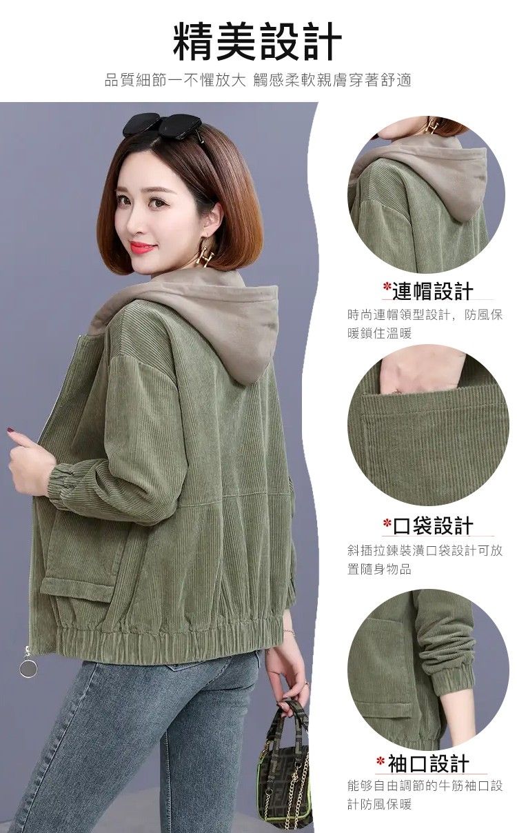 女士燈芯絨外套【買一送一】綠色+杏色各一件(到手兩件,每件549元!)