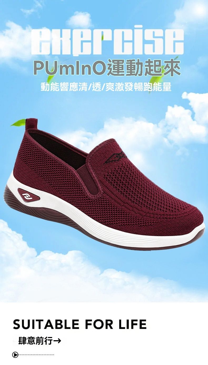 自如舒適透氣厚底飛織女鞋【買一送一】棗紅色+石榴紅各一雙(到手兩雙,每雙均價499元!)