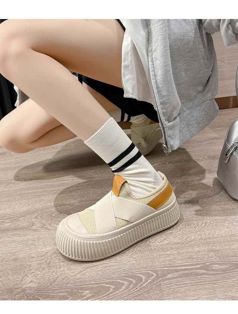 網面透氣厚底顯高潮搭女鞋【米色】2雙(到手2雙,每雙均價549元!)