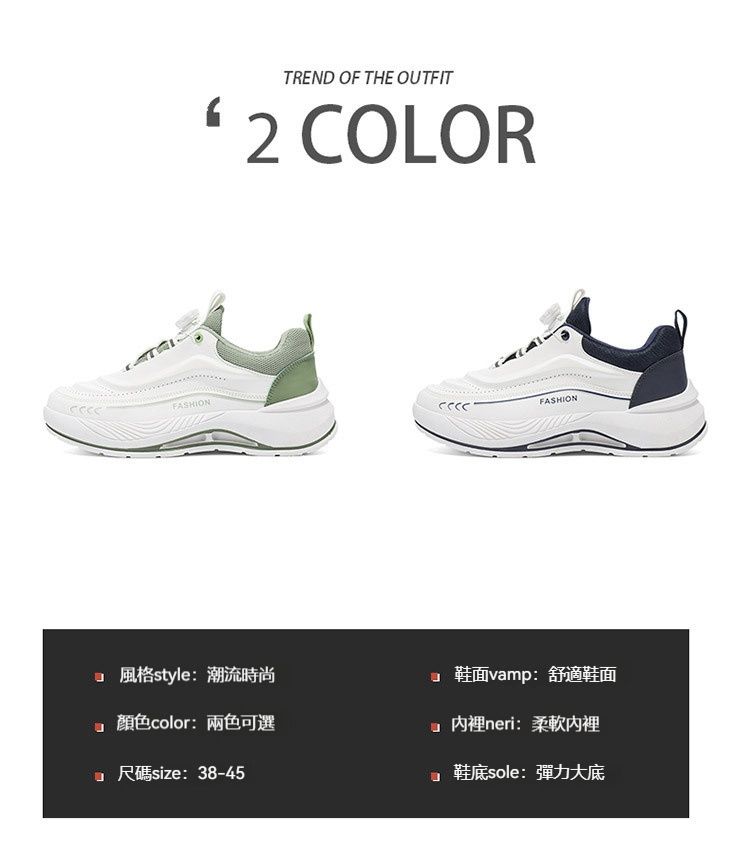 【旋鈕科技】減震增高厚底百搭運動休閒鞋【米綠色】+【深藍色】各一雙(優惠400,每雙均價798元)