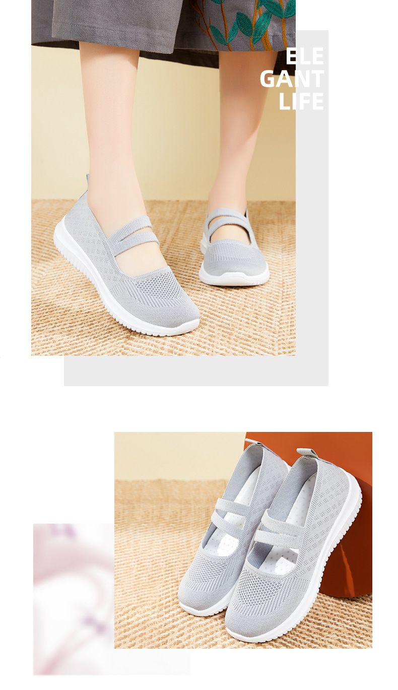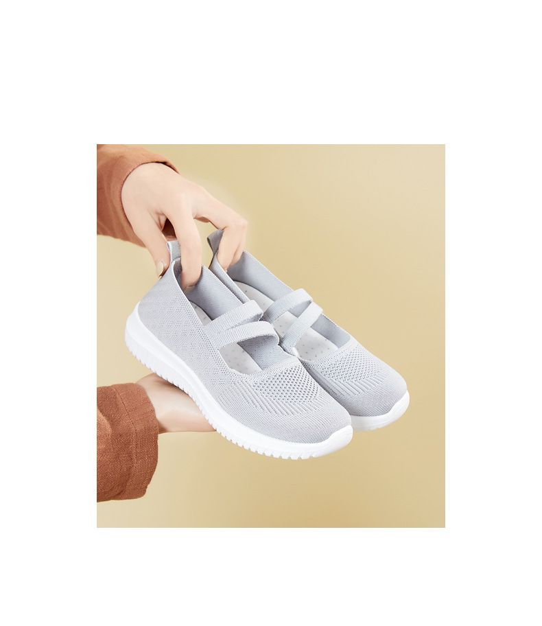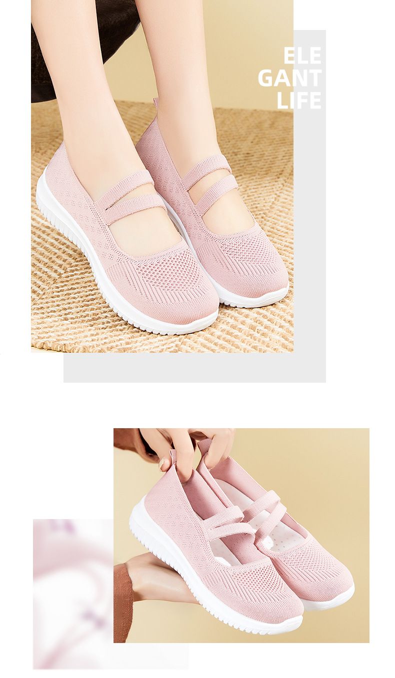 中老年軟底休閒透氣鞋【特惠買一送一】【灰色】+【粉紅色】各一雙