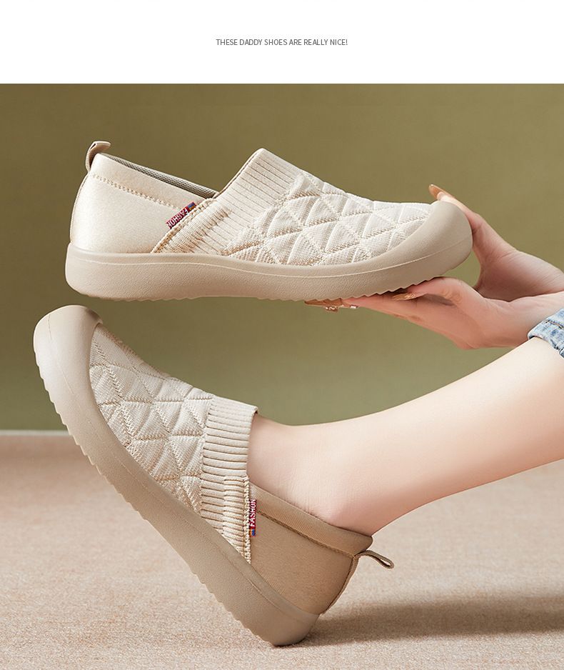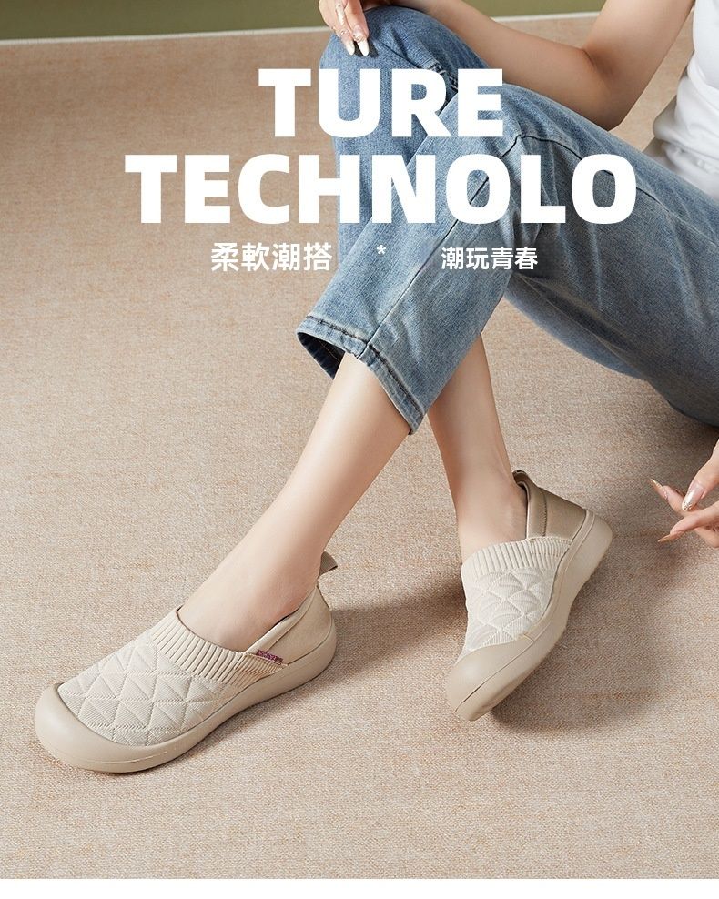 百搭輕便平底軟底一腳蹬飛織鞋【買一送一】【米色】+【黑色】各一雙(到手兩雙,每雙均價549元!)