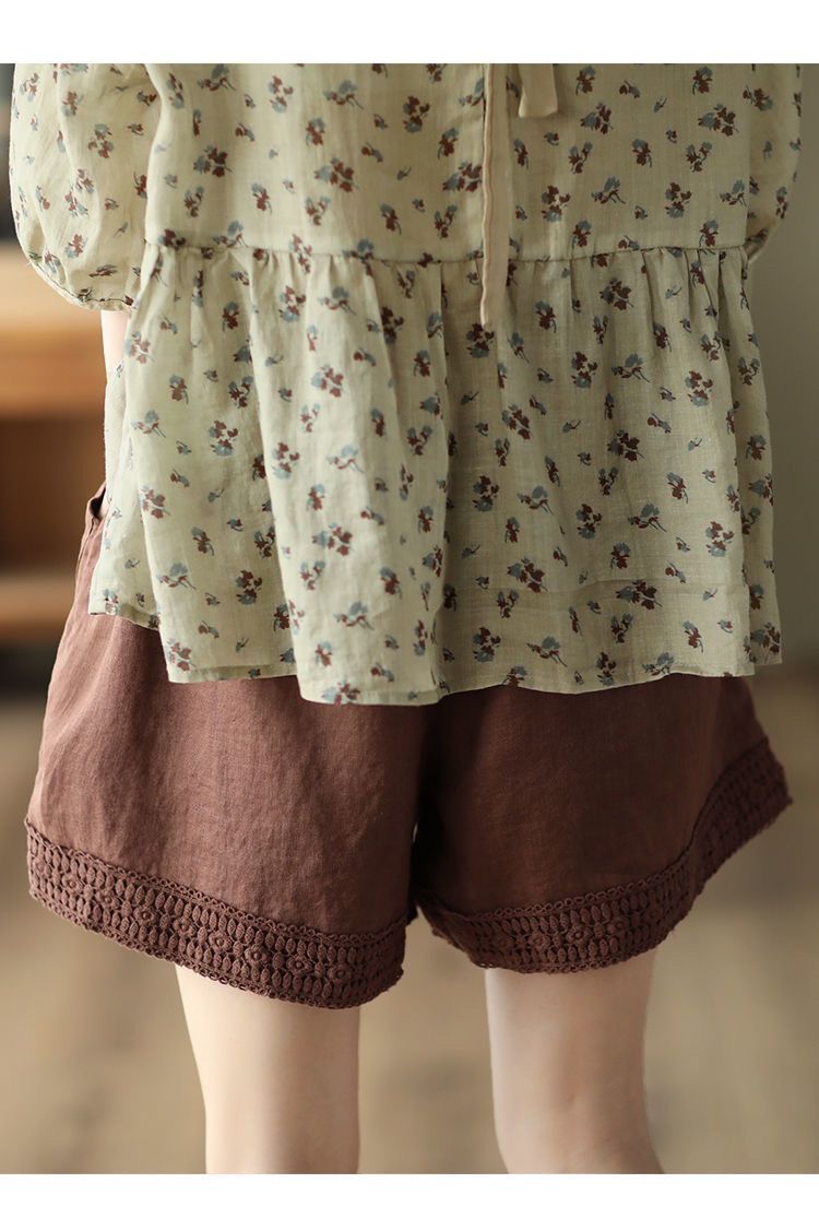 復古鏤空鉤花棉麻短褲【灰藍色】+【棕咖色】各一件(到手兩件,每件均價499元)
