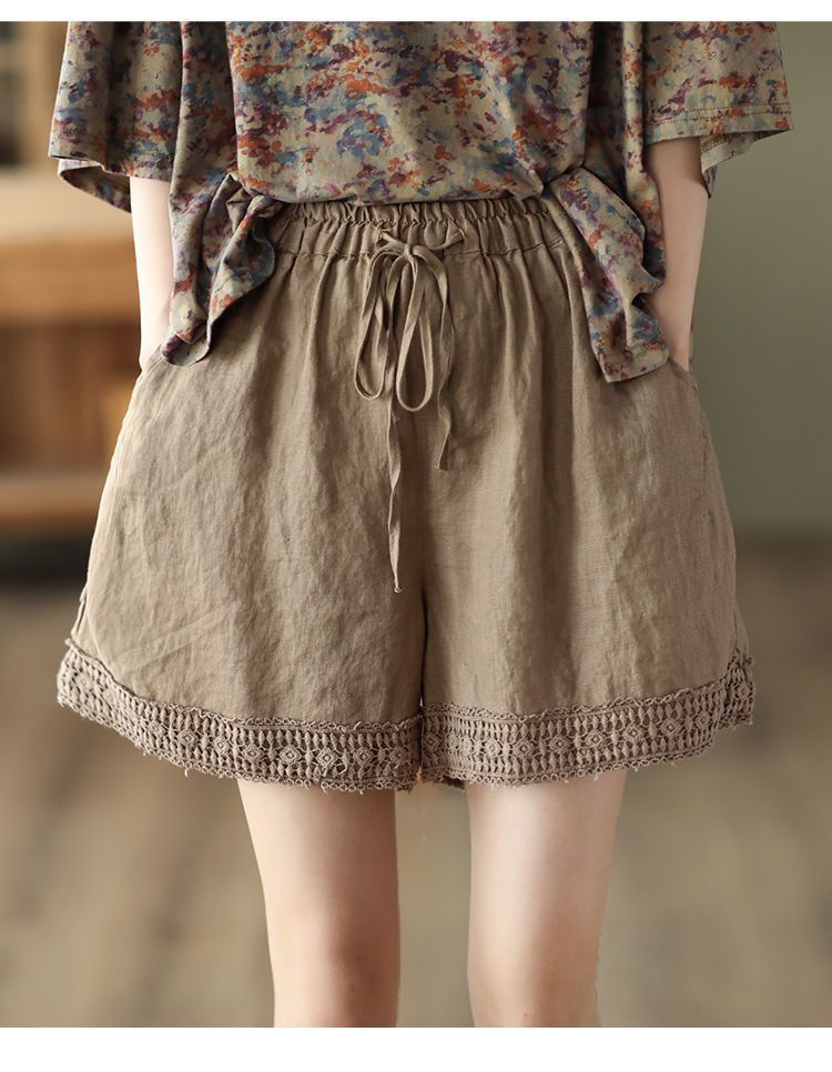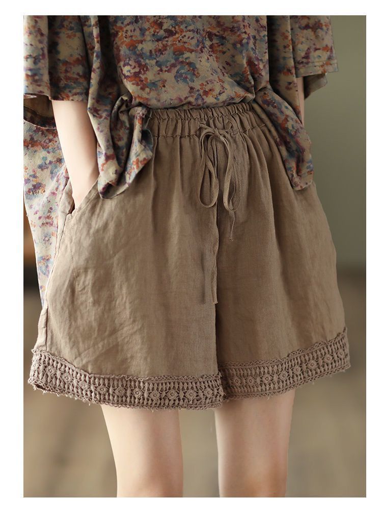 復古鏤空鉤花棉麻短褲【棕咖色】+【咖啡色】各一件(到手兩件,每件均價499元)
