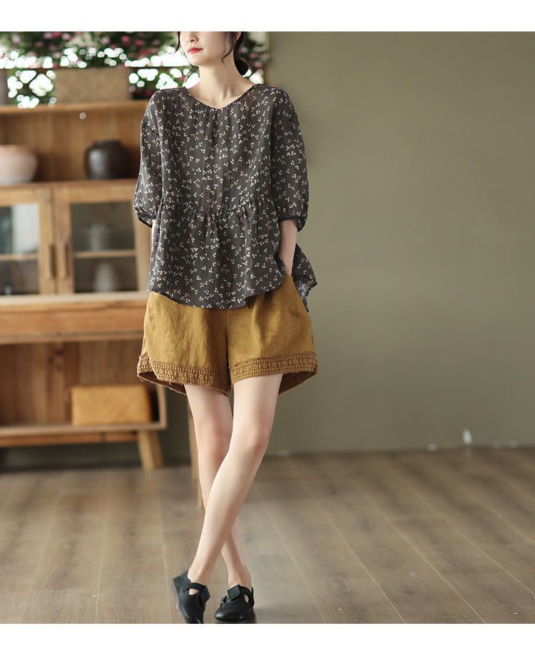 復古鏤空鉤花棉麻短褲【黑色】+【棕咖色】各一件(到手兩件,每件均價499元)