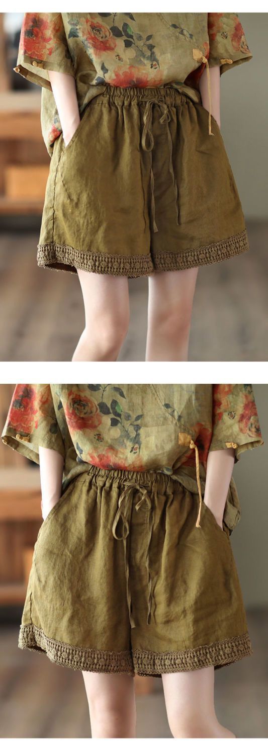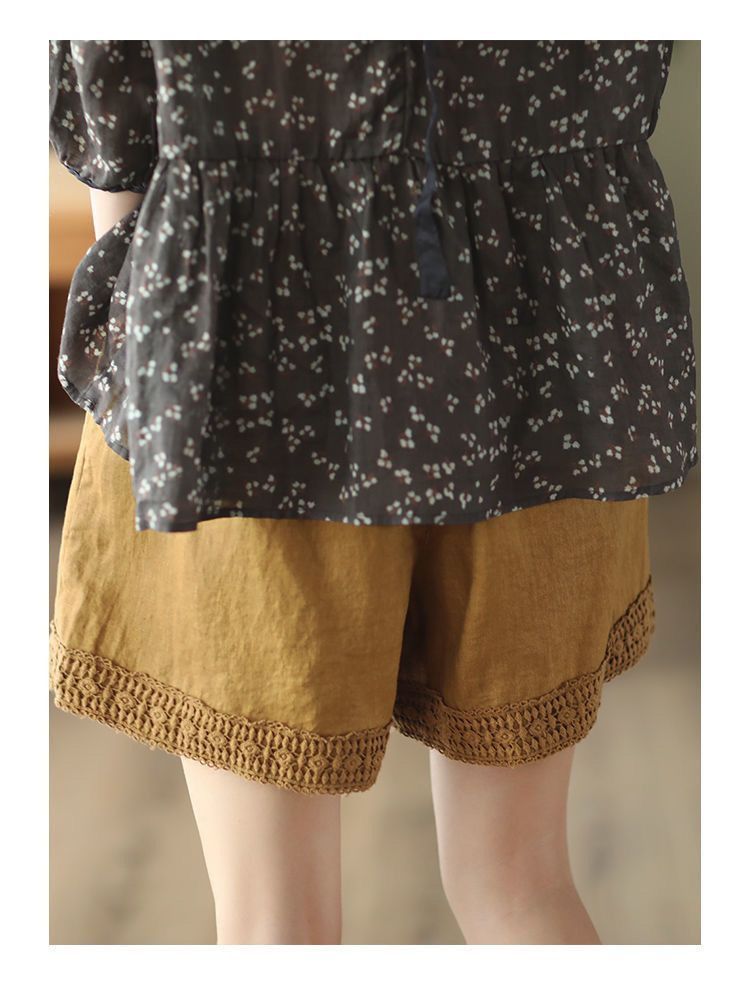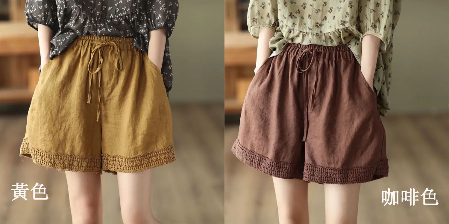 復古鏤空鉤花棉麻短褲【焦黃色】+【棕咖色】各一件(到手兩件,每件均價499元)